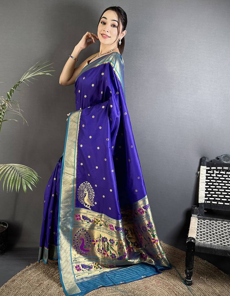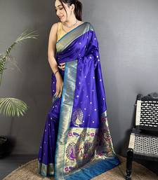 | Product Name | Women Royal Blue Peacock Motifs Lichi Silk Saree | |