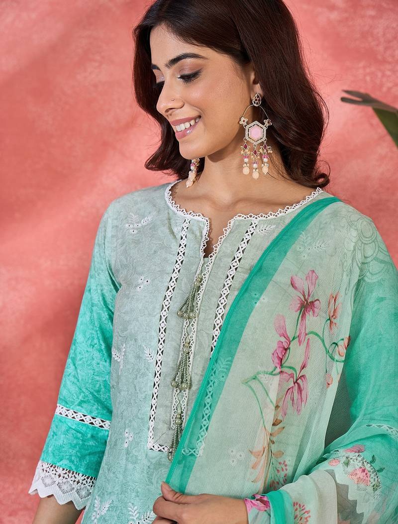 | Product Name | Women Sea Green Pure Cotton Embroidered Kurta Set | |