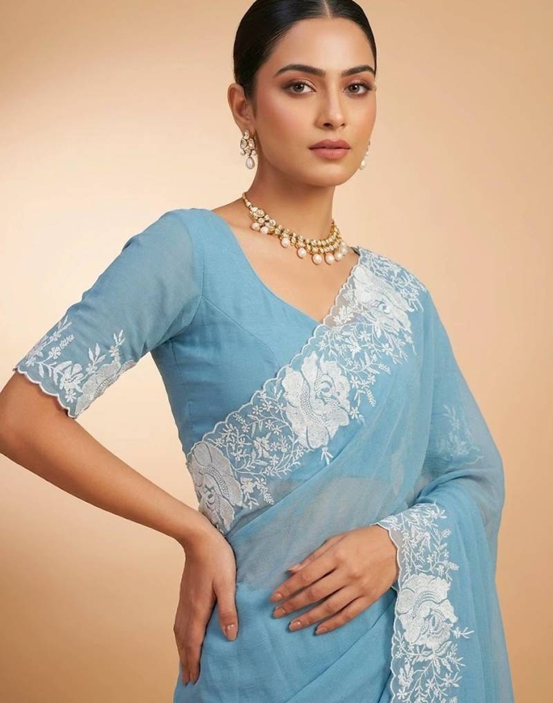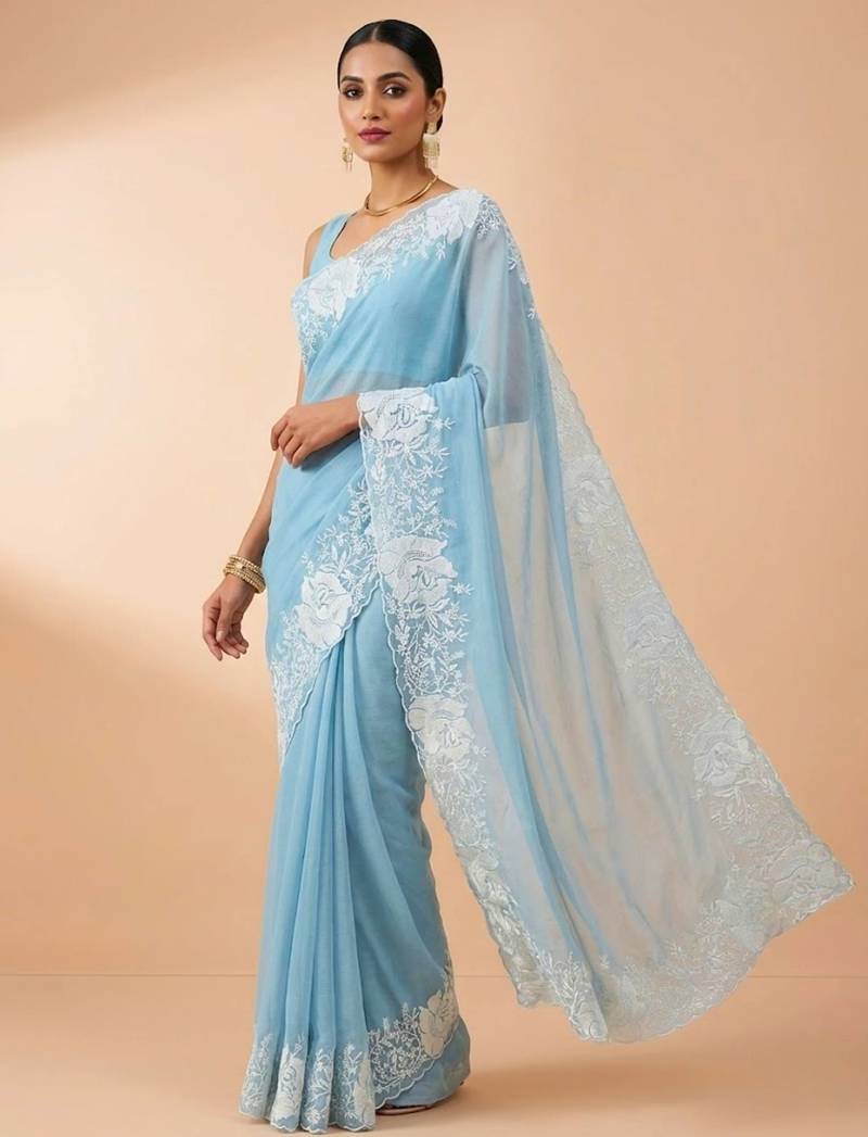 Women sky blue embroidered candy crush saree