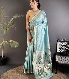 | • | Saree | : | Color- Sky Blue / Fabric- Pure Silk Blend |