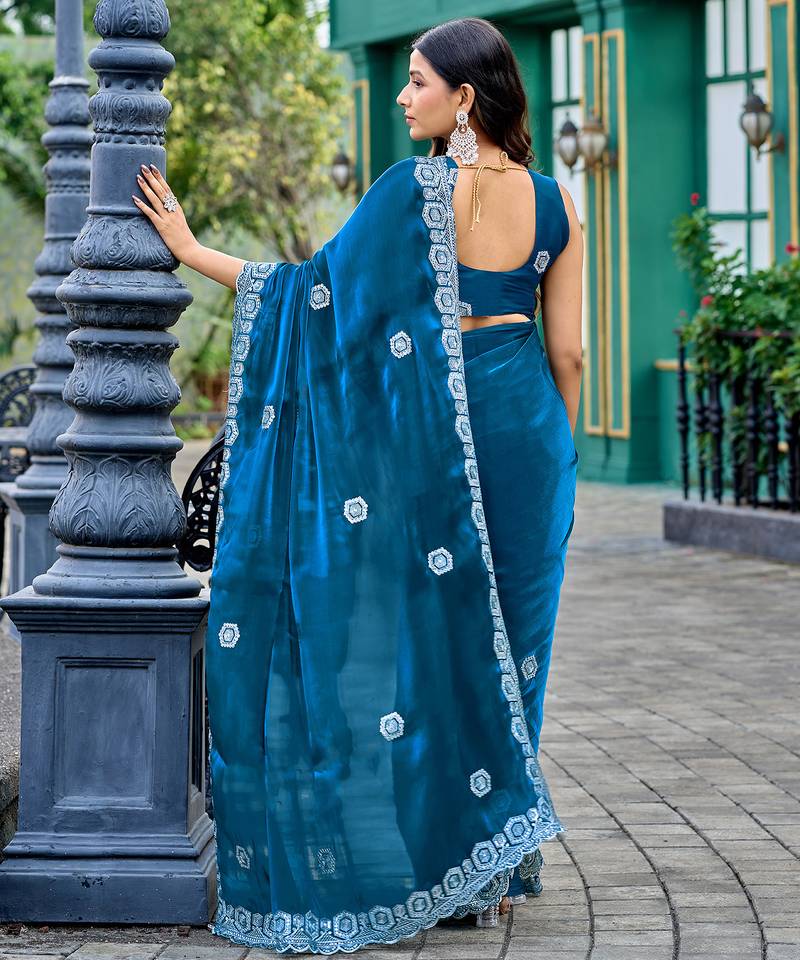| Product Name | Women Teal Blue Geomatric Shimmer Chiffon Saree | |