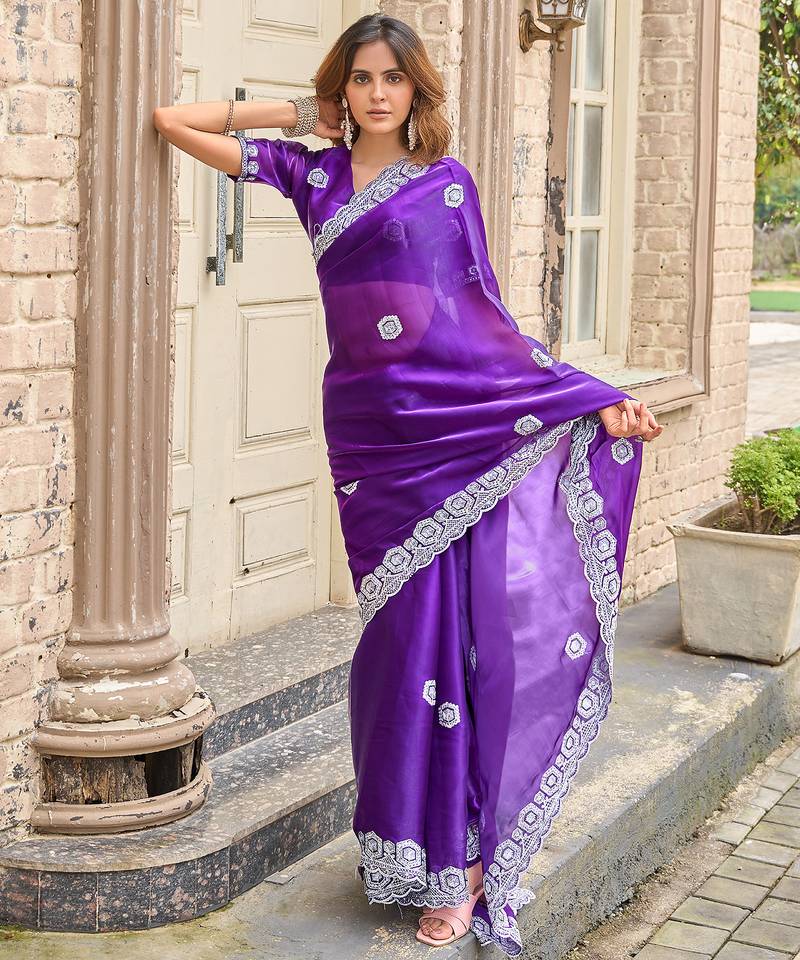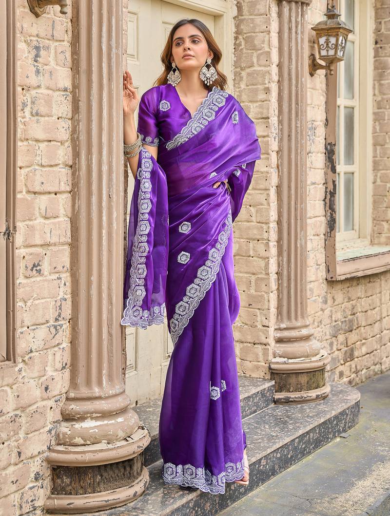 | Product Name | Women Violet Geomatric Shimmer Chiffon Saree | |