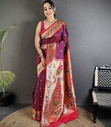 | • | Saree | : | Color- Wine / Fabric- Pure Silk Blend |
