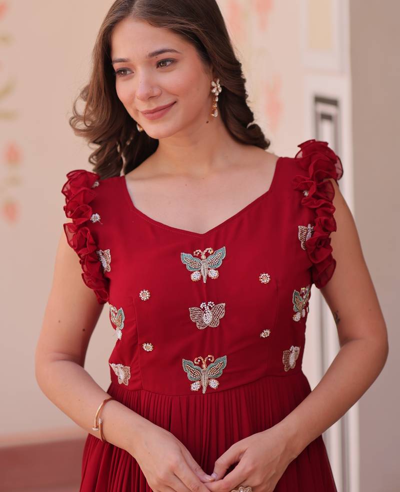 | Product Name | Maroon Faux Blooming Beads Embroidered Designer Anarkali Set | |