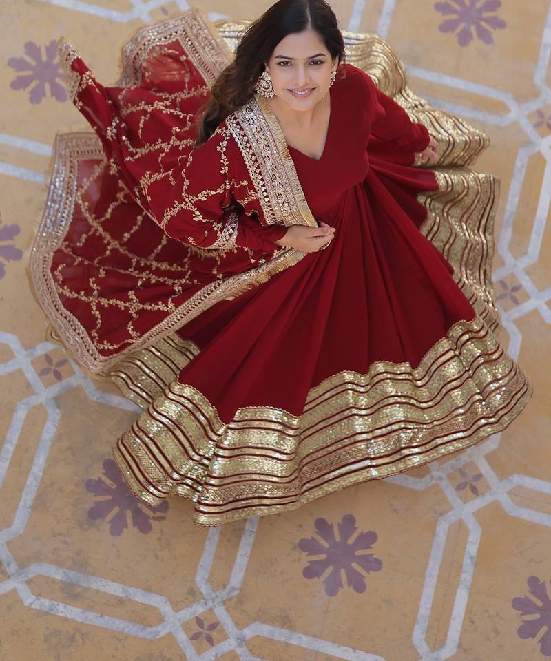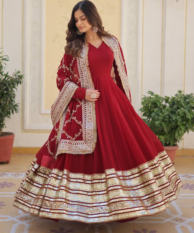 | Product Name | Maroon Faux Blooming Embroidered Anarkali Set With Dupatta | |