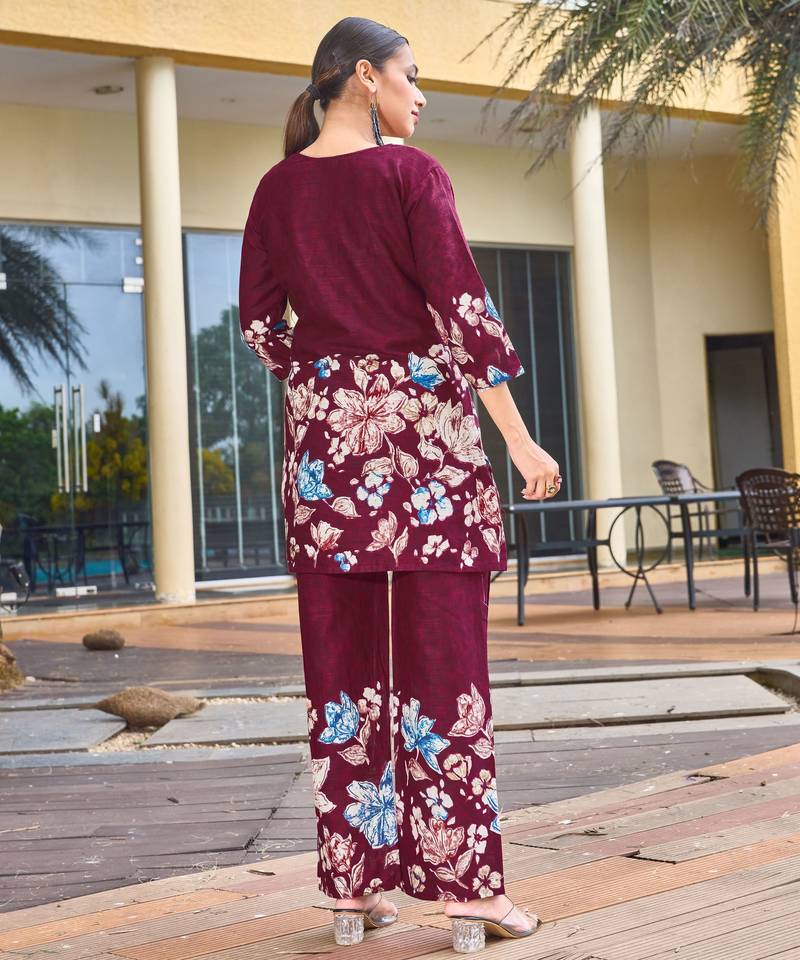 | Product Name | Maroon Floral Printed Cotton Classic Co Ord Set | |