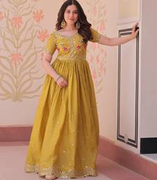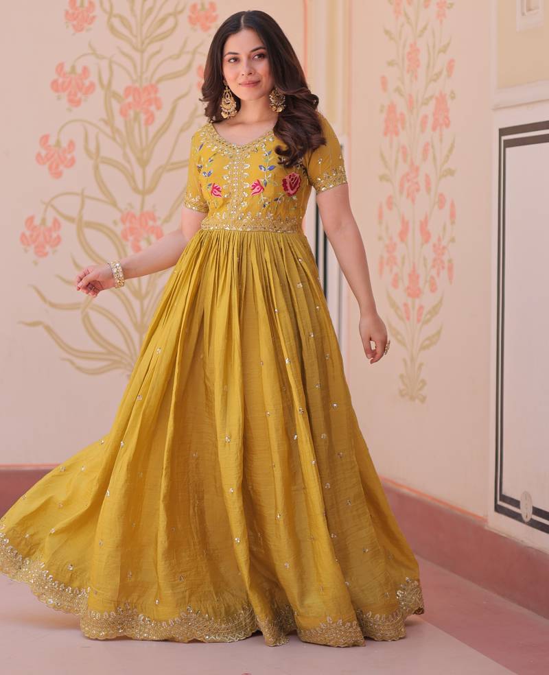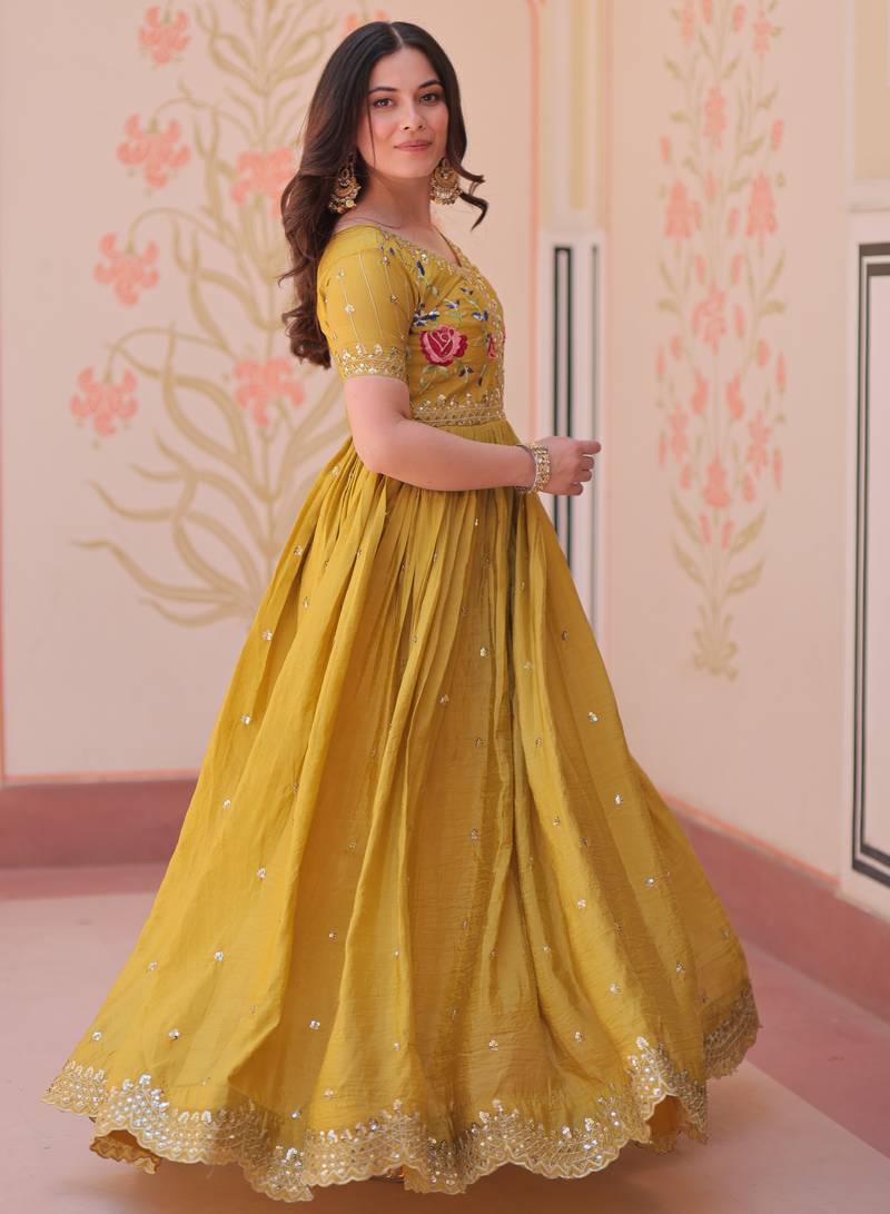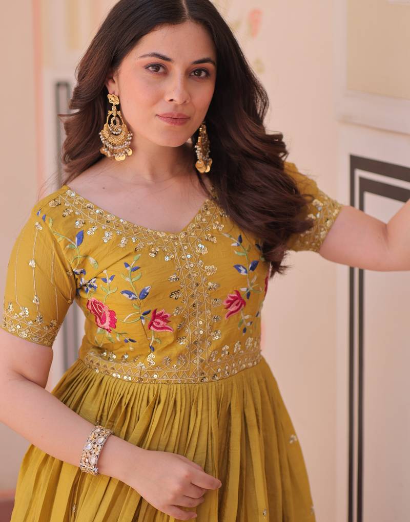 | Product Name | Mustard Gold Crush Embroidered Designer Anarkali Set | |