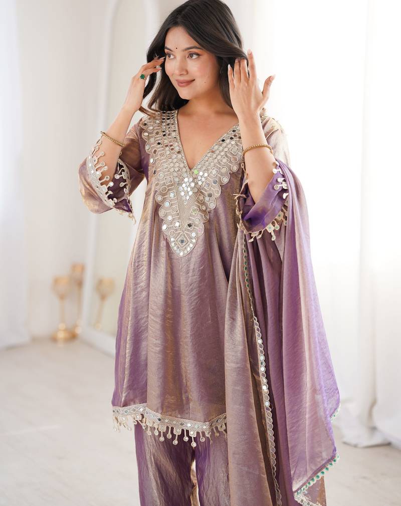 | Product Name | Purple Embroidered Fendy Designer Kurta Set With Dupatta | |