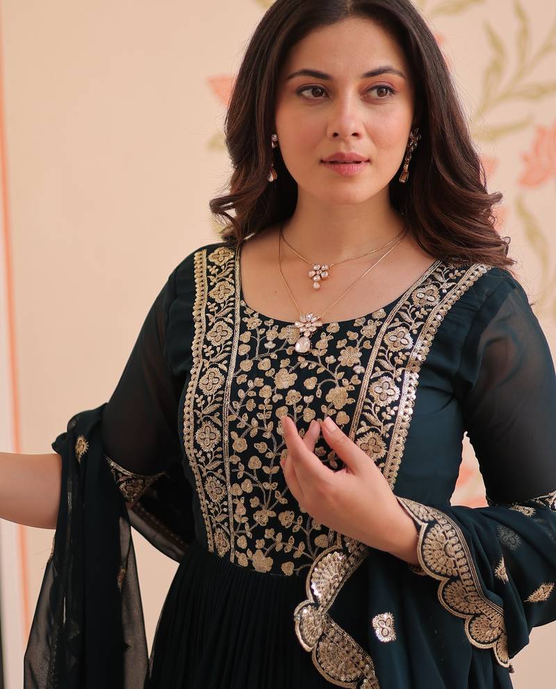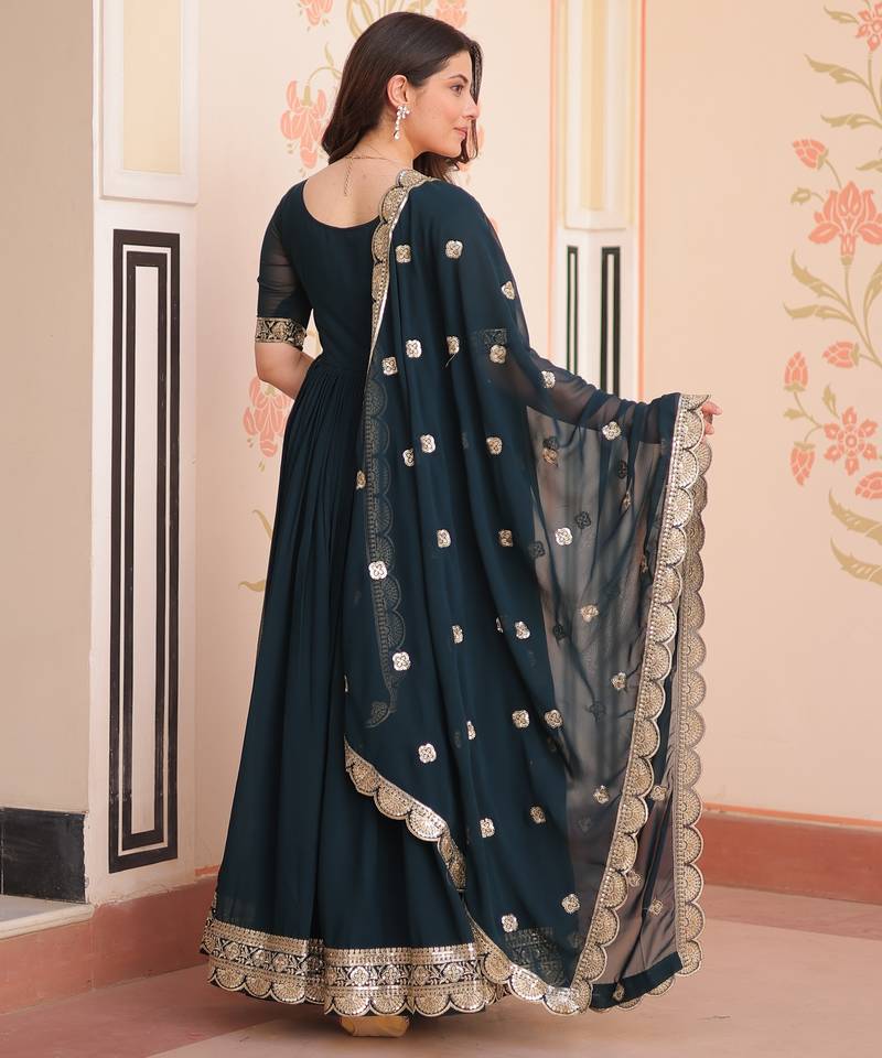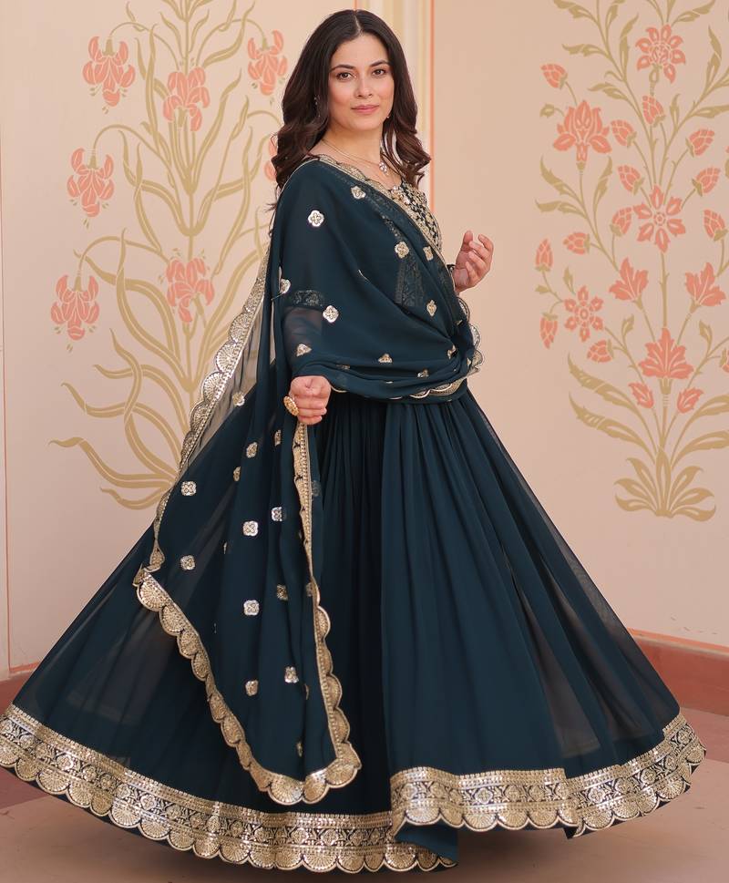 | Product Name | Teal Faux Blooming Embroidered Anarkali Set With Dupatta | |