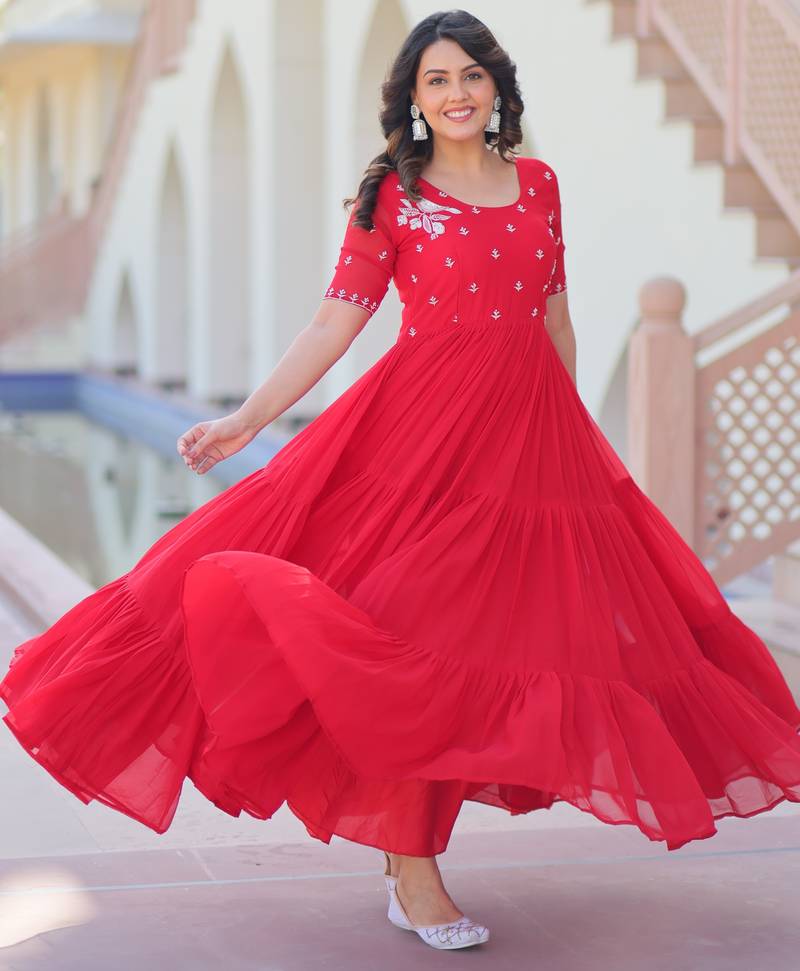 | • | Kameez | : | Color- Red / Fabric- Faux Georgette |