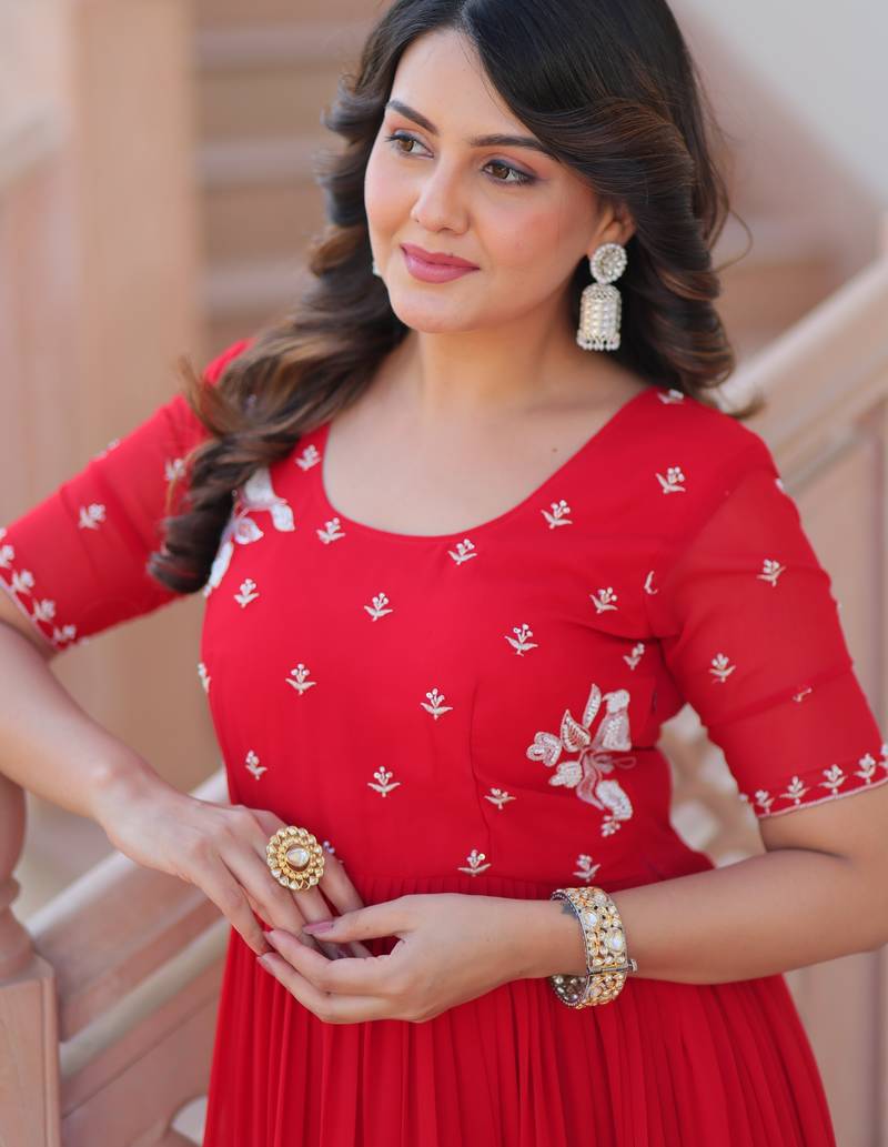 | Product Name | Red Faux Blooming Beads Embroidered Designer Anarkali Set | |