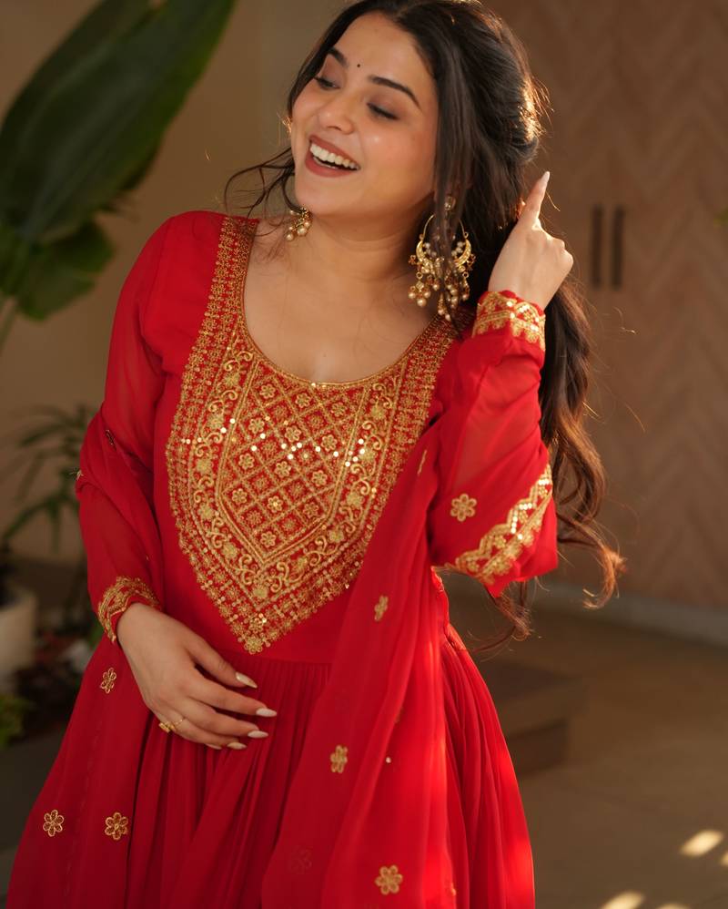 | Product Name | Red Faux Blooming Embroidered Anarkali Set With Dupatta | |