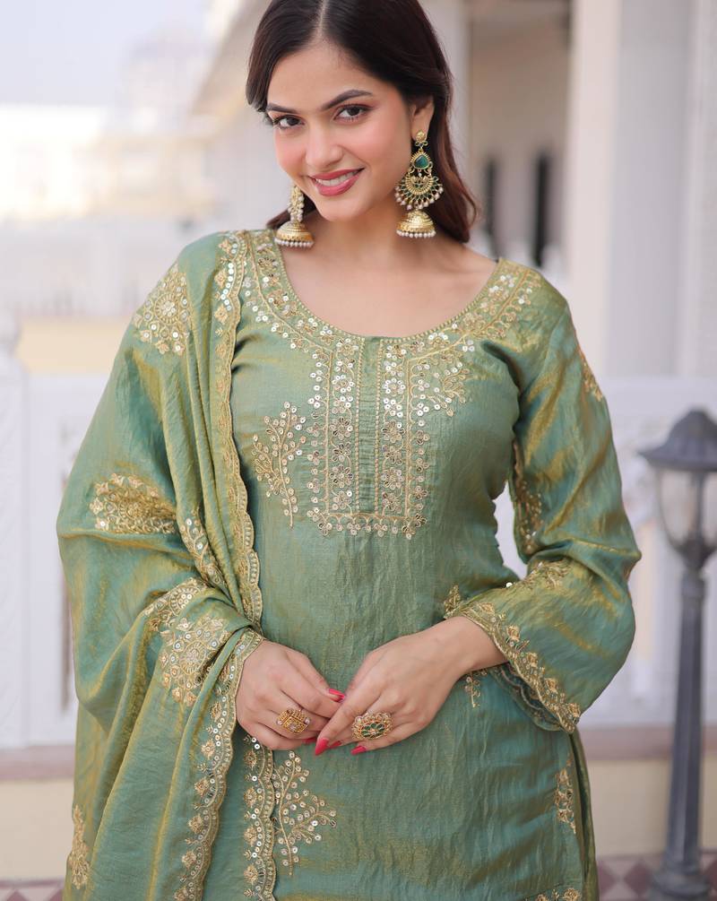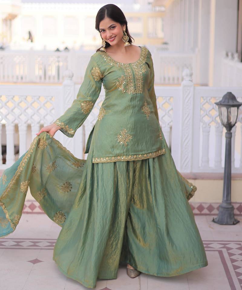 | Product Name | Sea Green Fendi Crush Embroidered Sharara Set With Dupatta | |