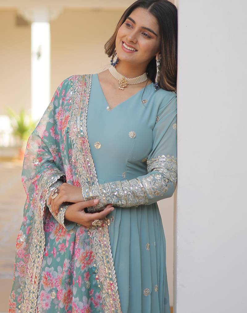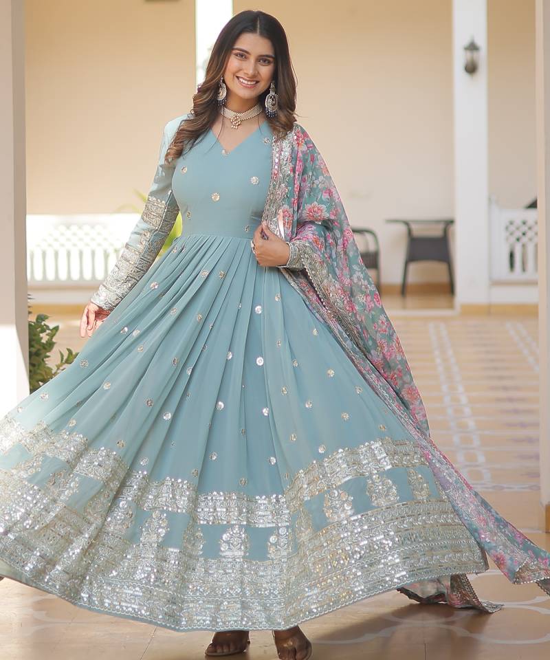 | Product Name | Sky Blue Faux Georgette Embroidered Anarkali Set With Dupatta | |
