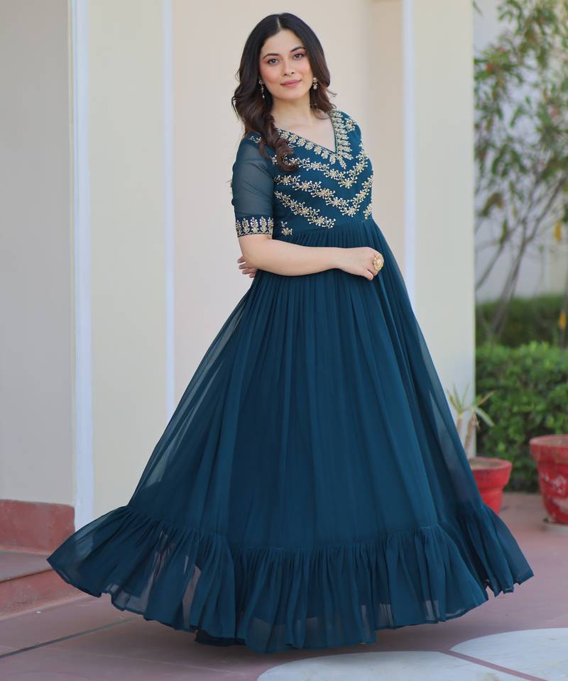 | • | Kameez | : | Color- Teal / Fabric- Faux Georgette |
