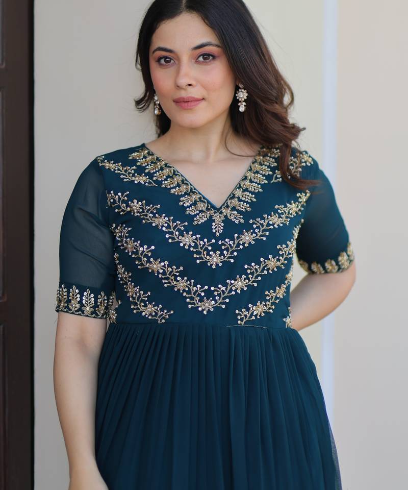 | Product Name | Teal Faux Blooming Beads Embroidered Designer Anarkali Set | |