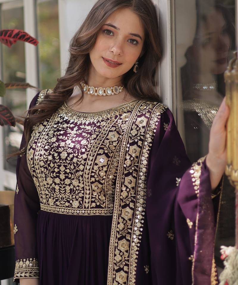 | Product Name | Wine Faux Blooming Embroidered Anarkali Set With Dupatta | |