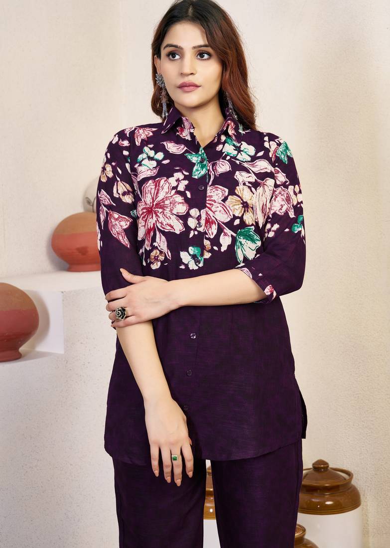 | Product Name | Wine Floral Printed Cotton Classic Co Ord Set | |