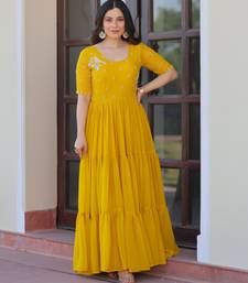 | • | Kameez | : | Color- Yellow / Fabric- Faux Georgette |
