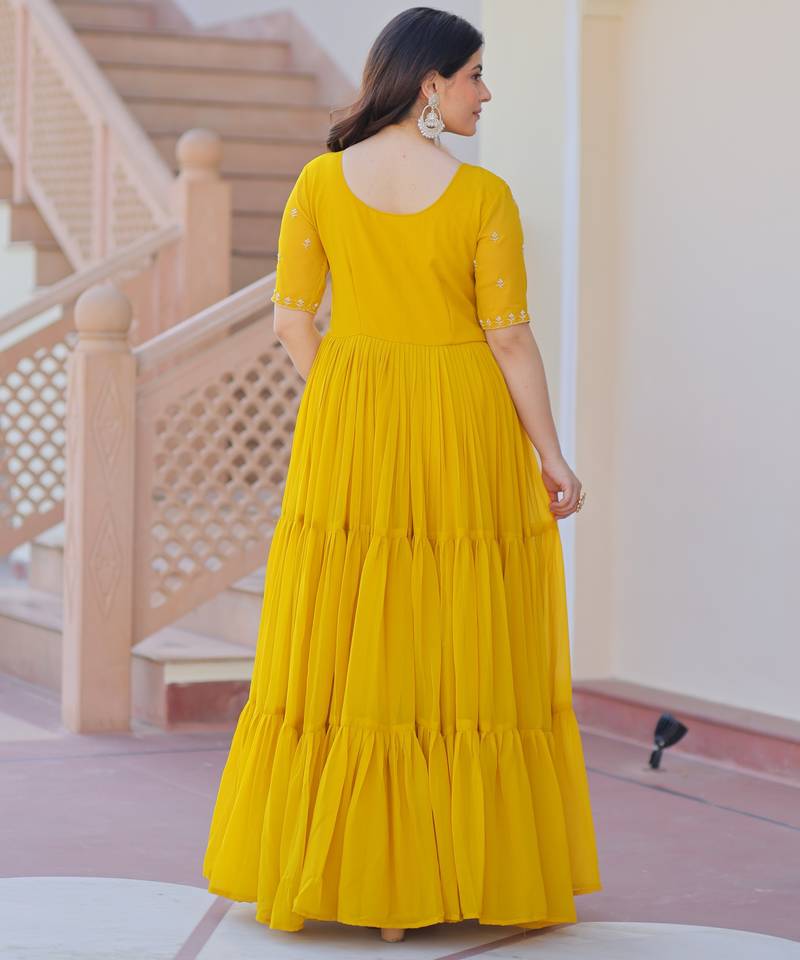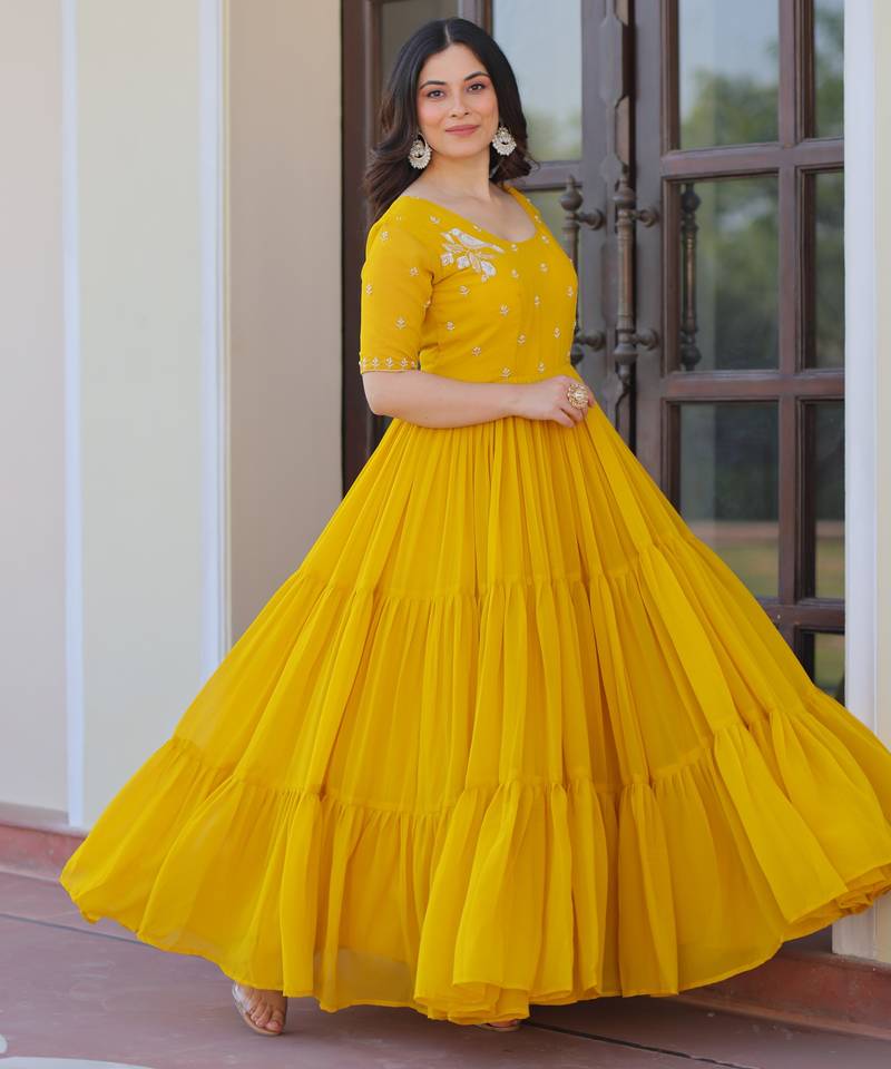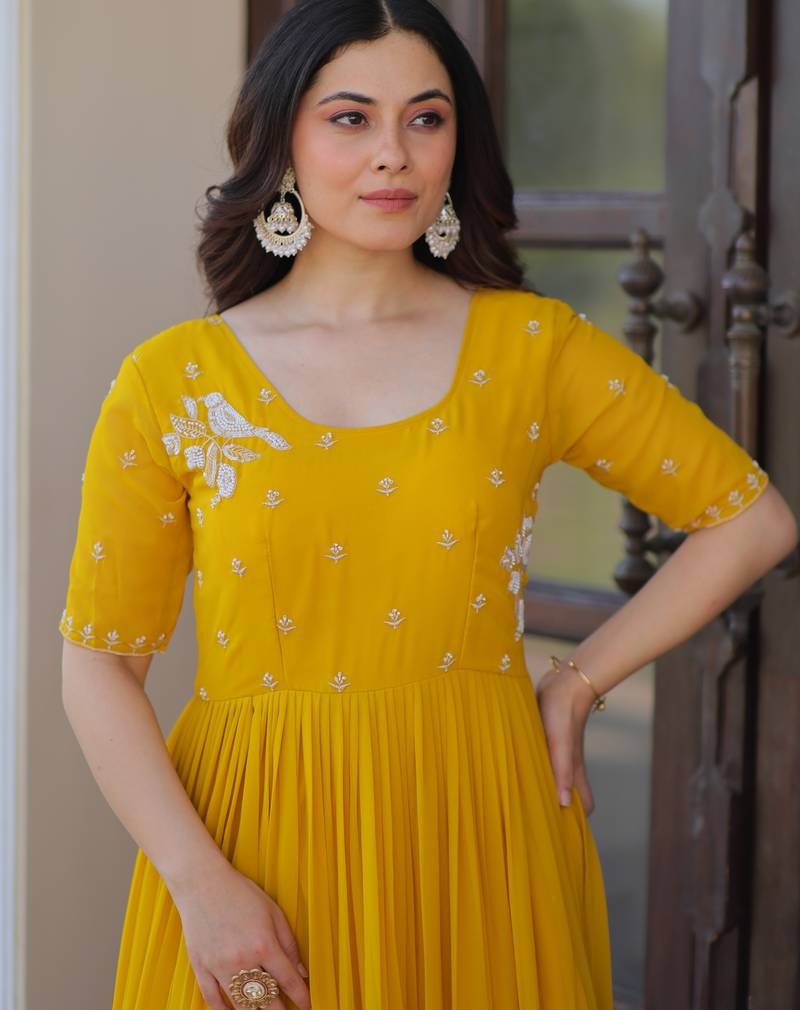 | Product Name | Yellow Faux Blooming Beads Embroidered Designer Anarkali Set | |