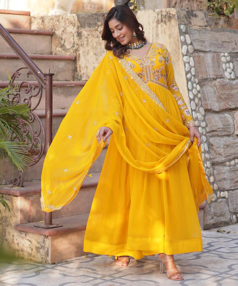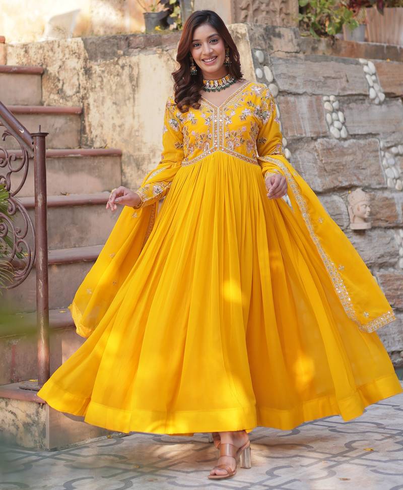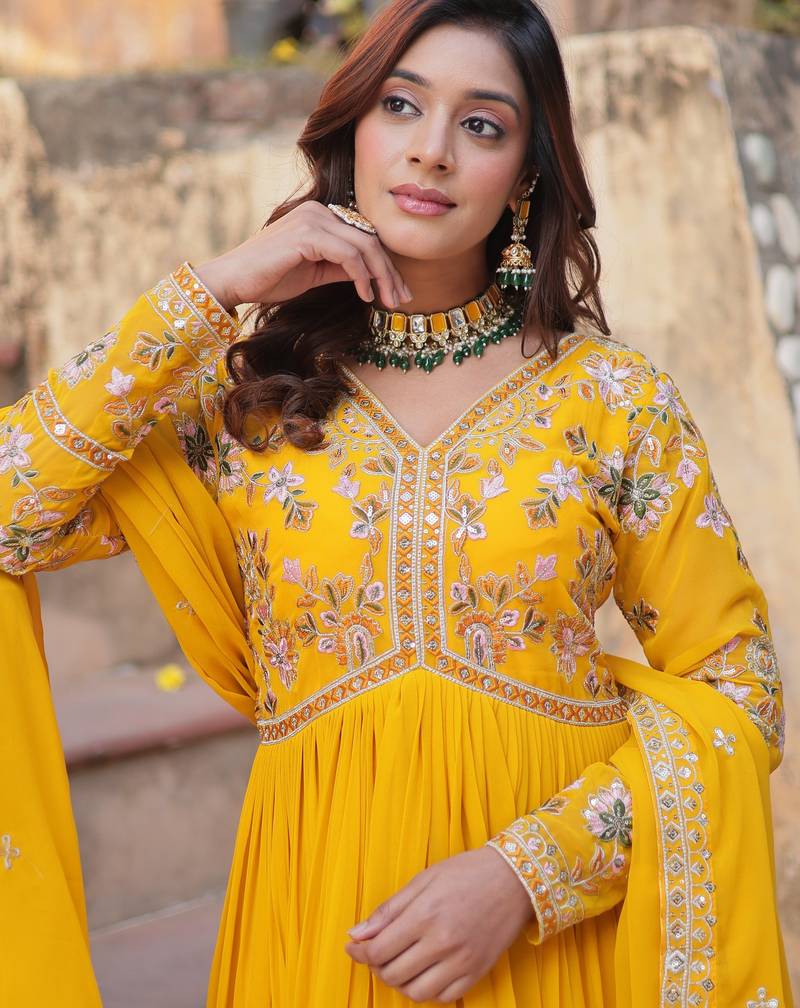 | Product Name | Yellow Faux Blooming Embroidered Anarkali Set With Dupatta | |