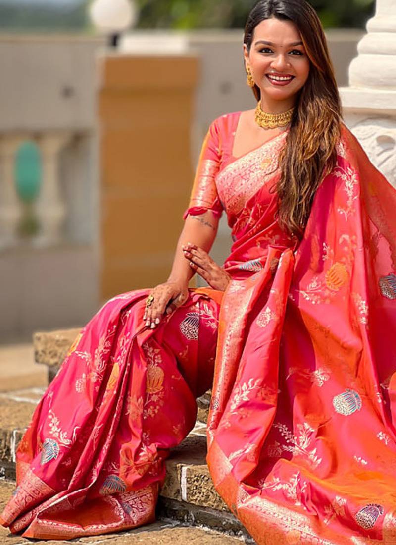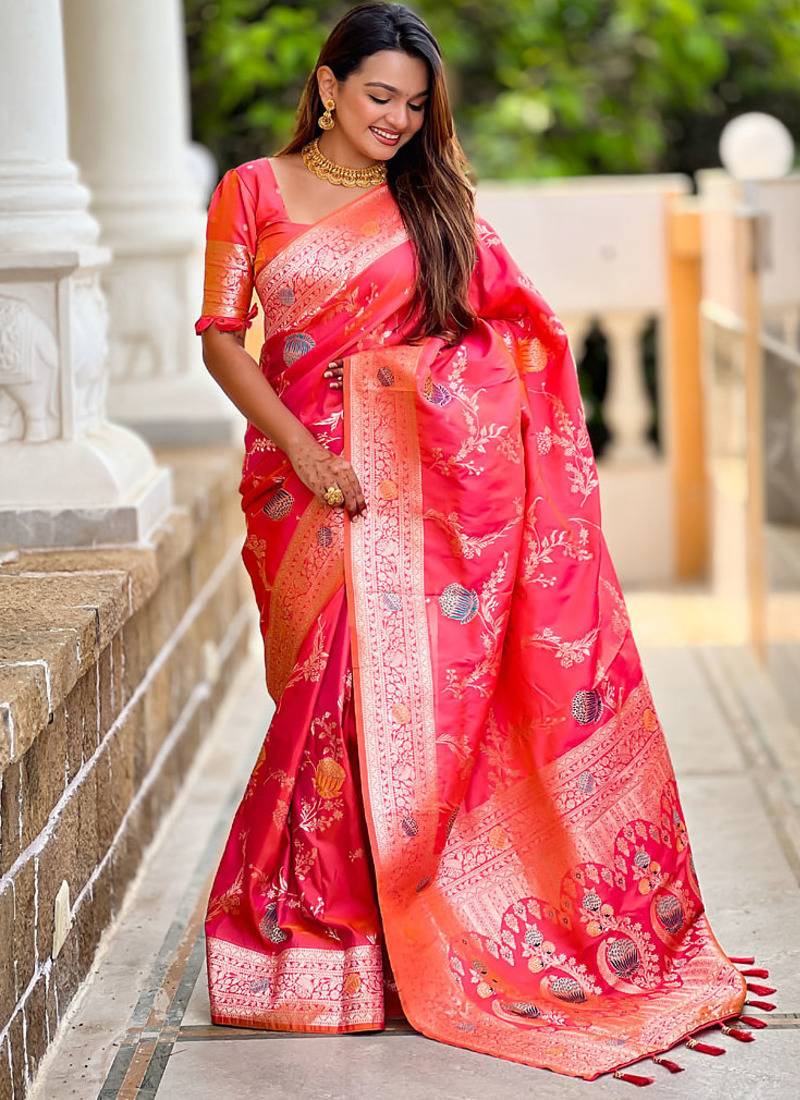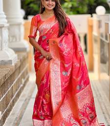 Designer fuchsia pink zari weaving work banarasi silk saree