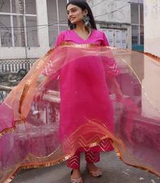 Light hot pink cotton silk embroidered kurta pant with duptta