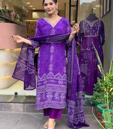 Purple colour kurati heavy silk fabric with digital printed
