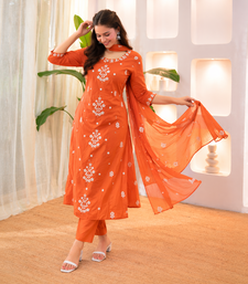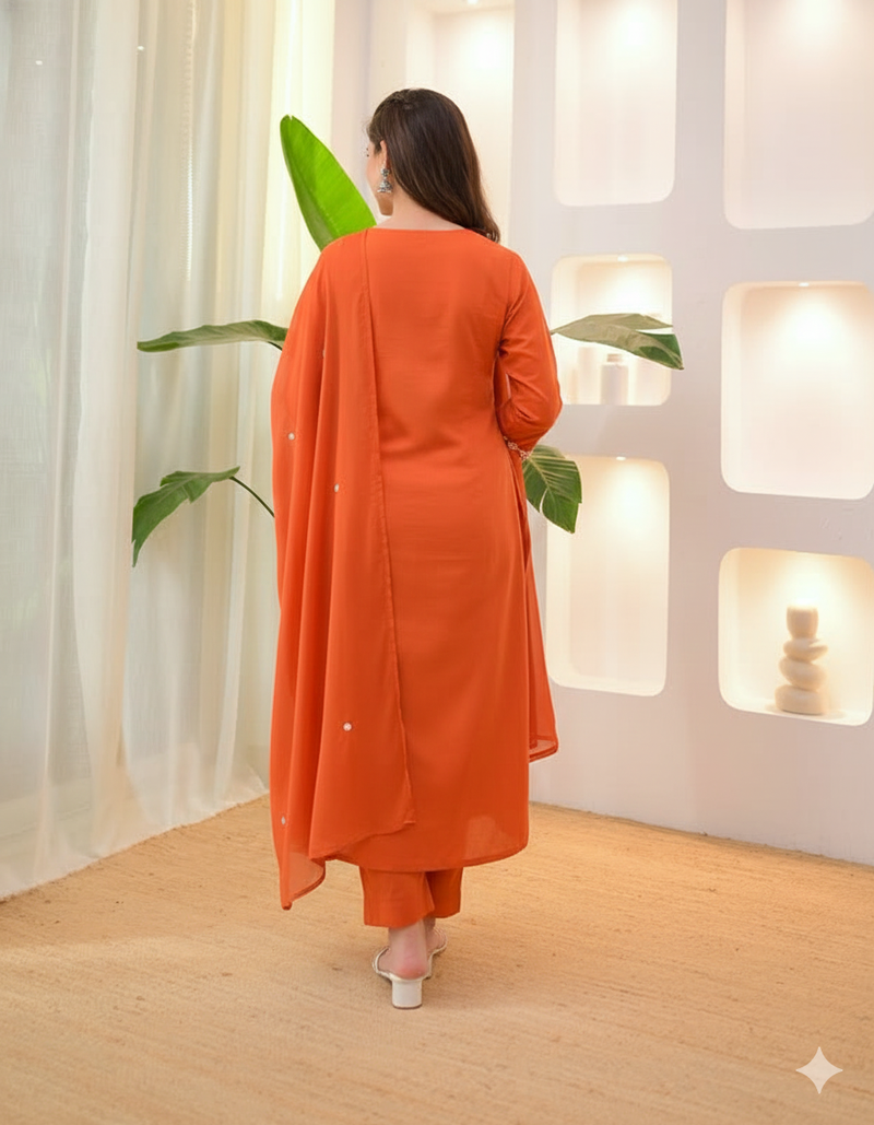 | Product Name | Womens Orange Rayon Straight Kurta Set Hand Embroidered Festival Wear | |