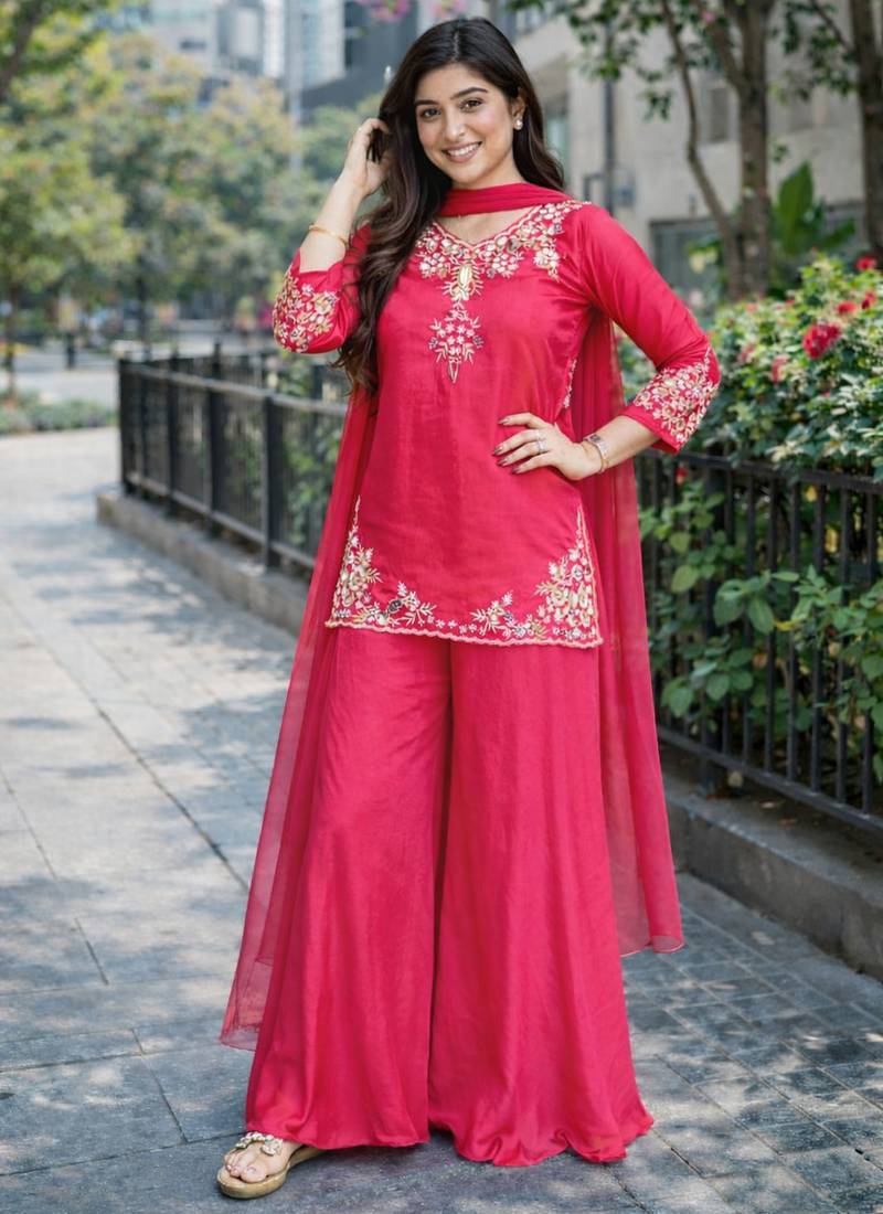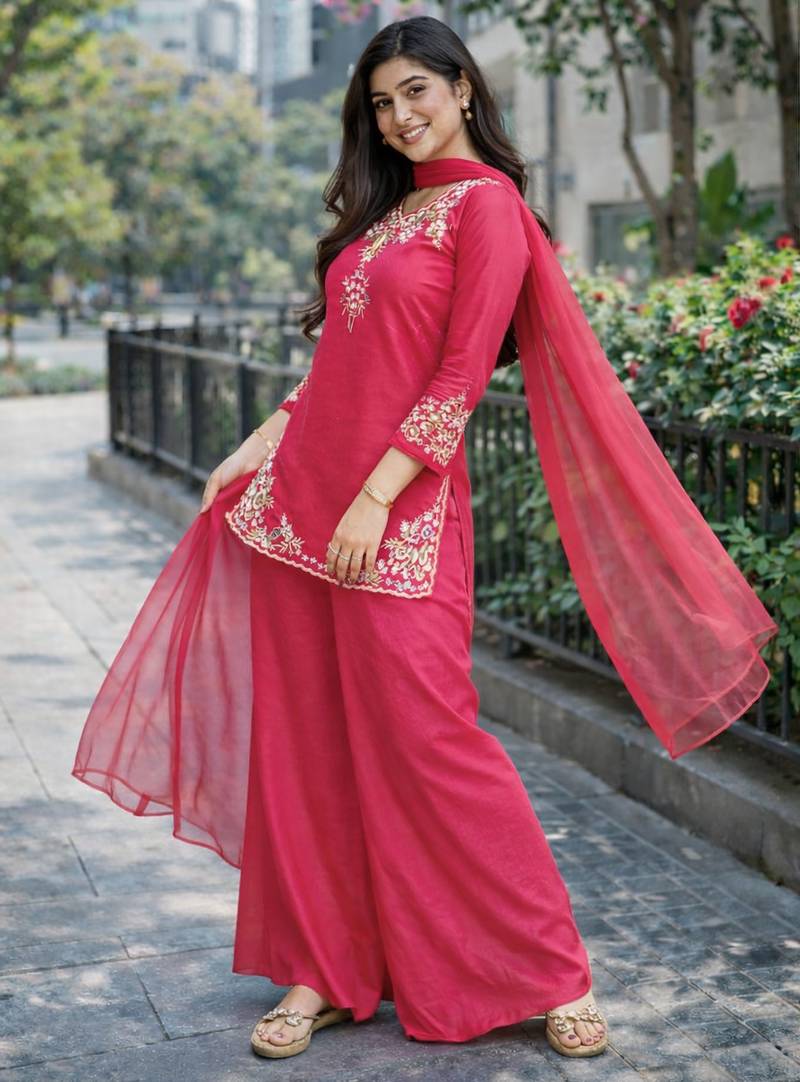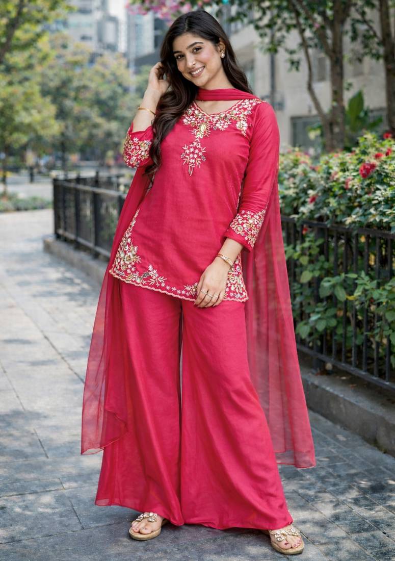 | Product Name | Womens Pink Kurati Palazzo With Dupatta Embroidered Festival Wear | |