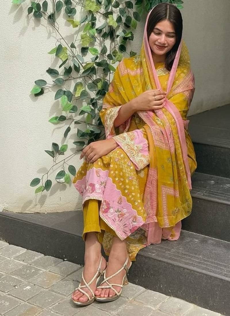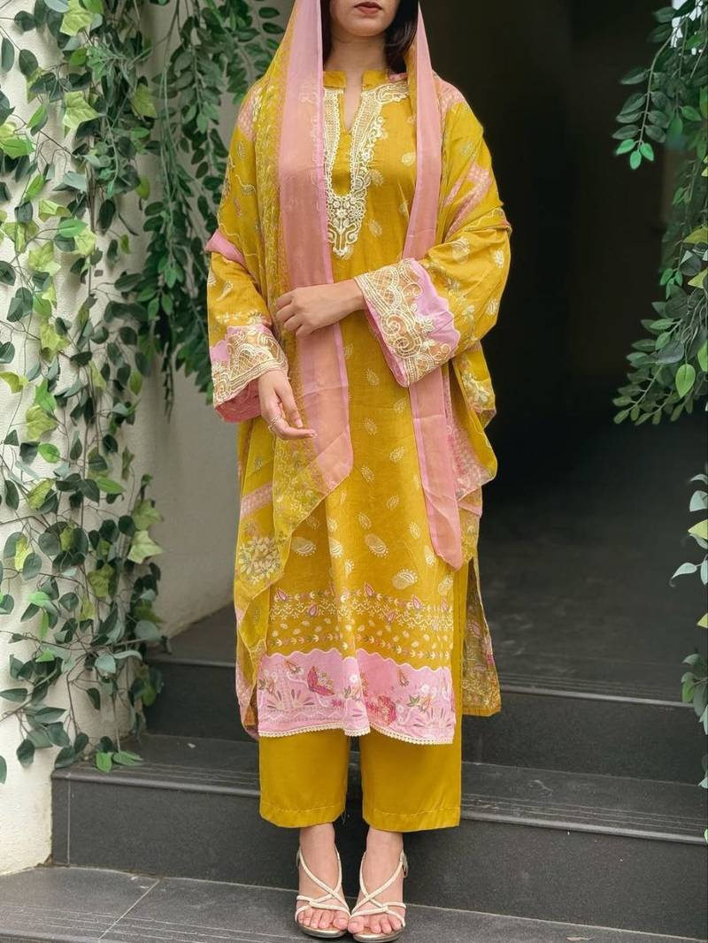 | Product Name | Yellow Colour Pakistani Printed Kurati Print With Embroidery Set | |