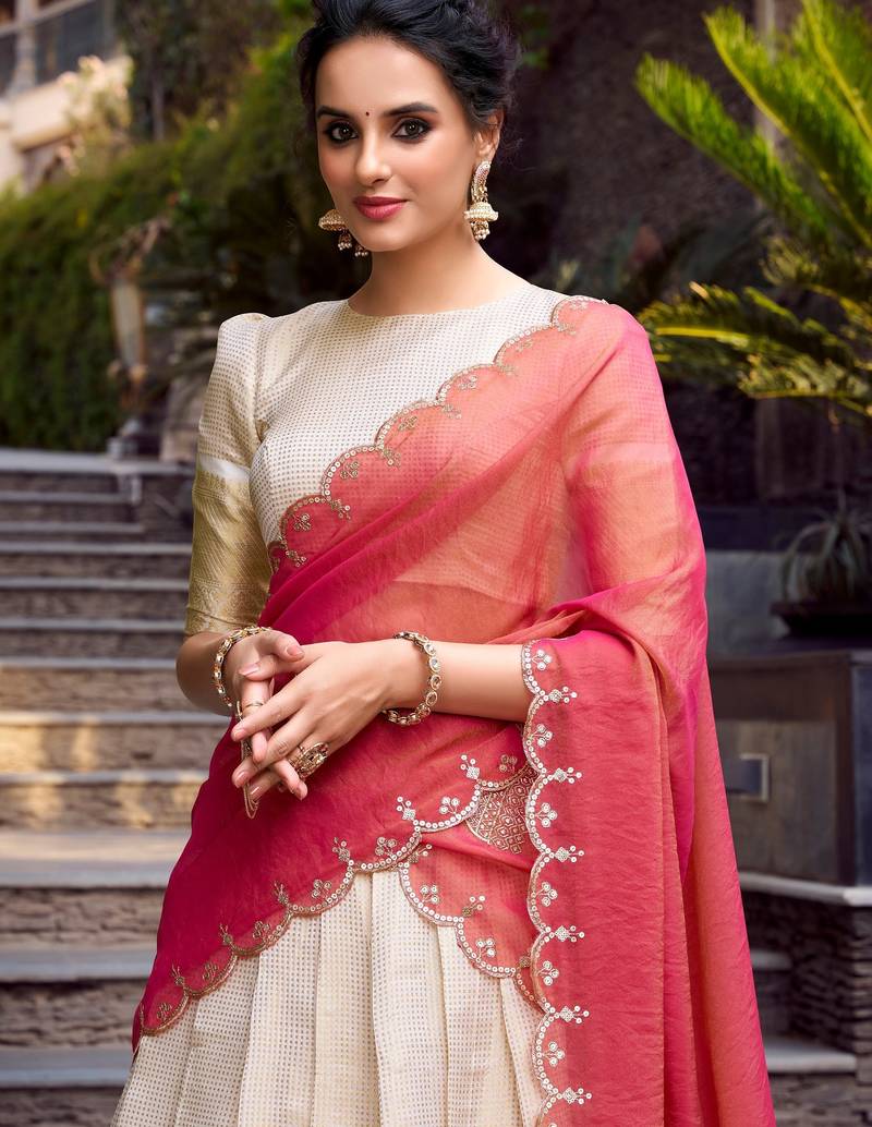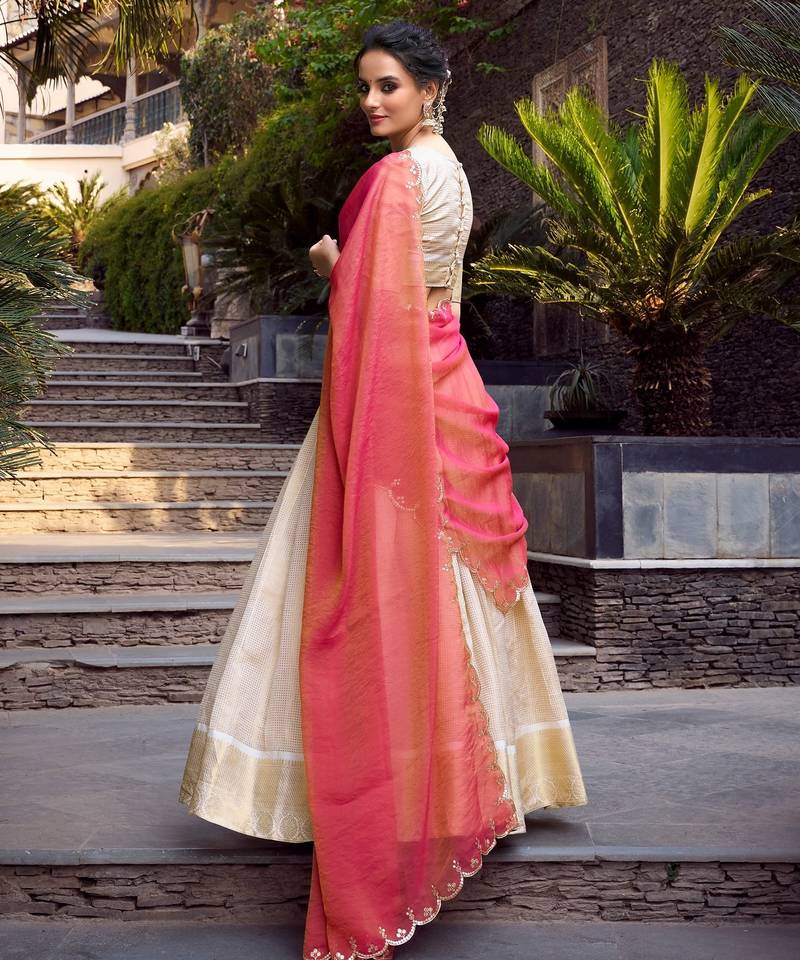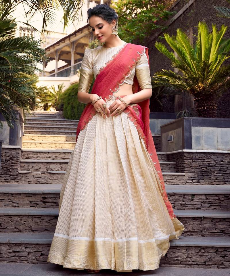 | Product Name | Cream Zari Woven Jacquard Chex Lehenga Choli With Dupatta | |