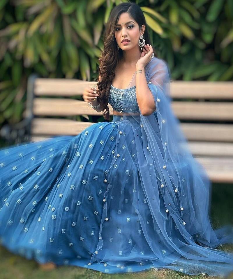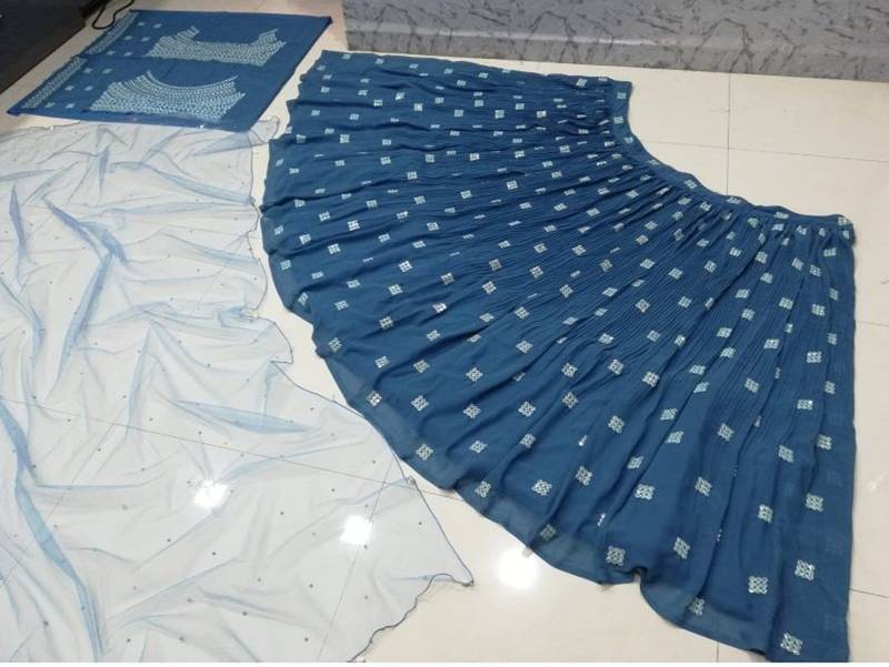 | Product Name | Dusty Blue Faux Georgette Lehenga Choli With Sequin & Thread Embroidery And Pearl Work Net Dupatta | |