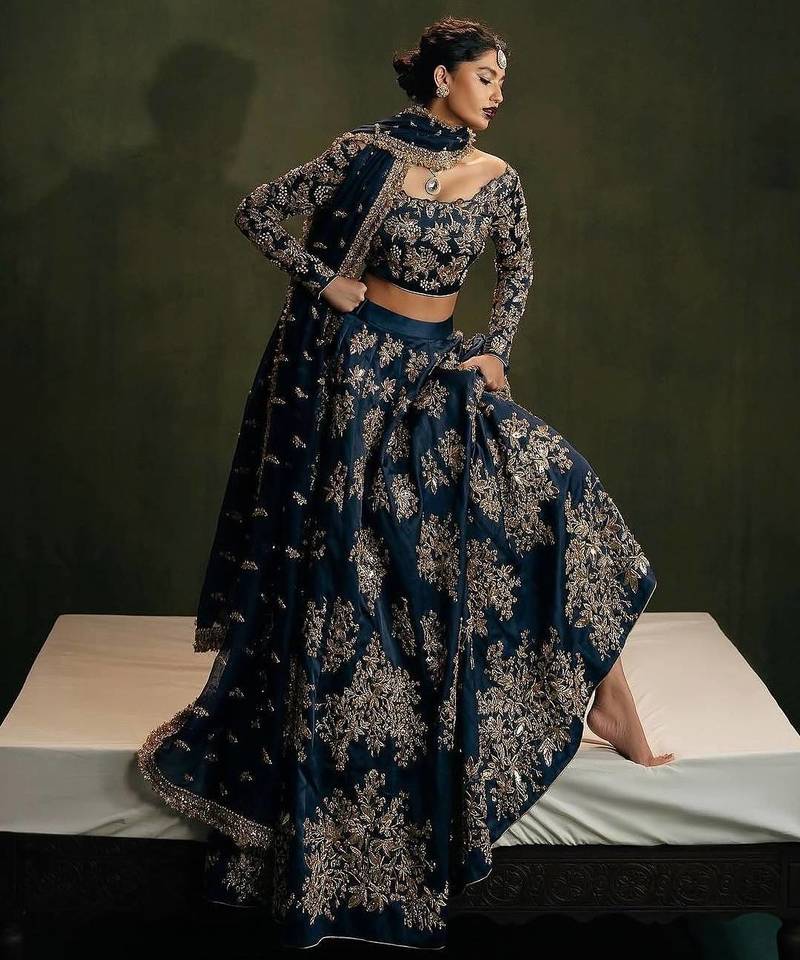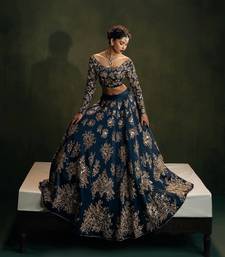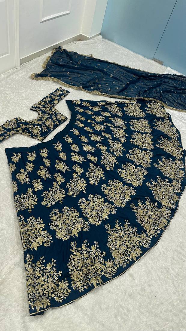 Elegant navy blue polo silk lehenga choli with zari thread & sequins work for wedding wear