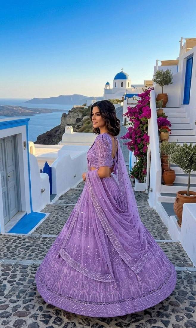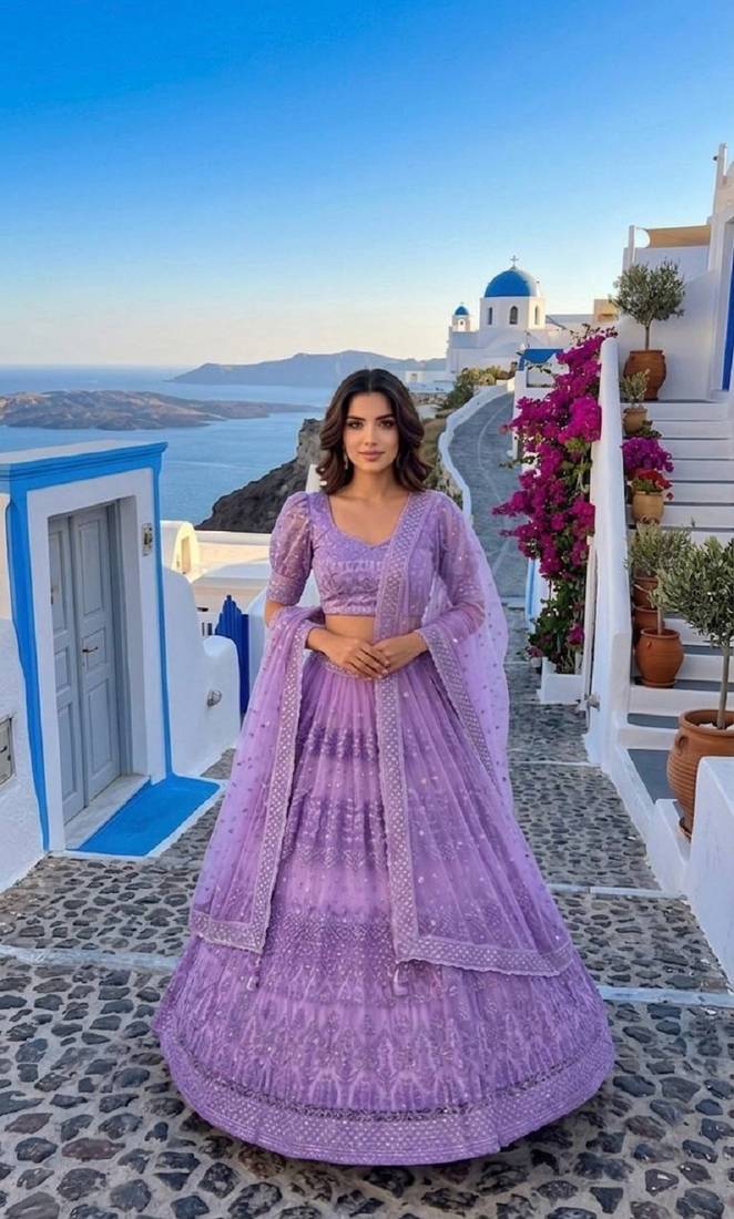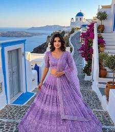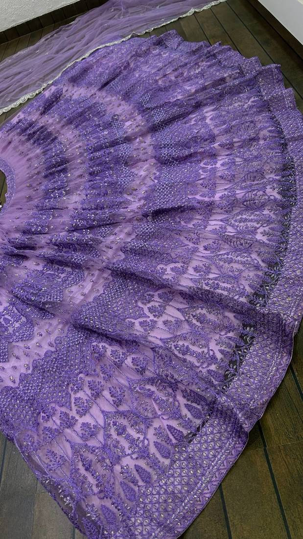 Lavender net lehenga choli with sequins, zari & thread work with dupatta