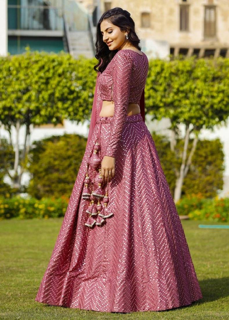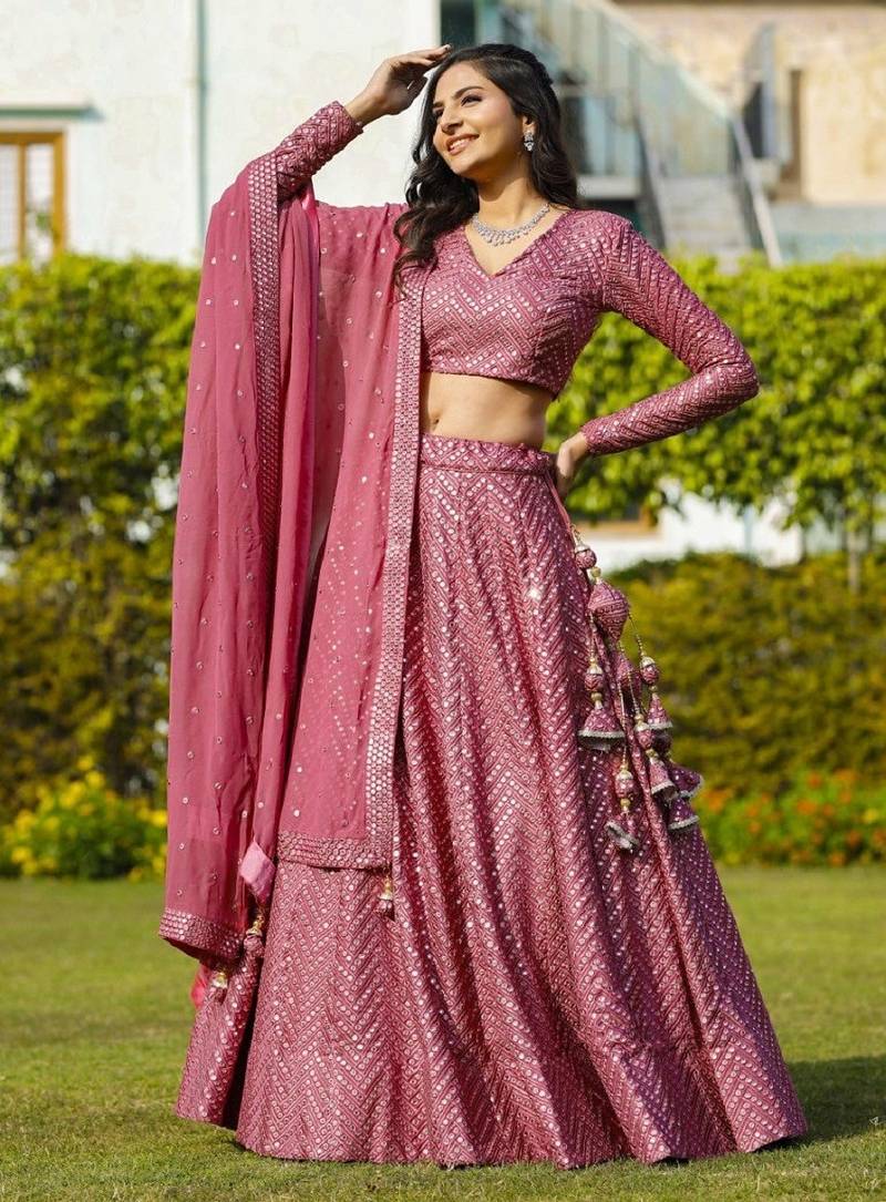 Metallic pink faux georgette sequins embroidered lehenga choli with dupatta