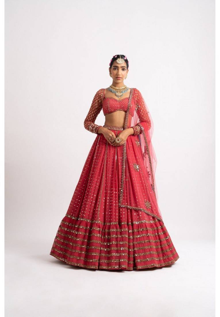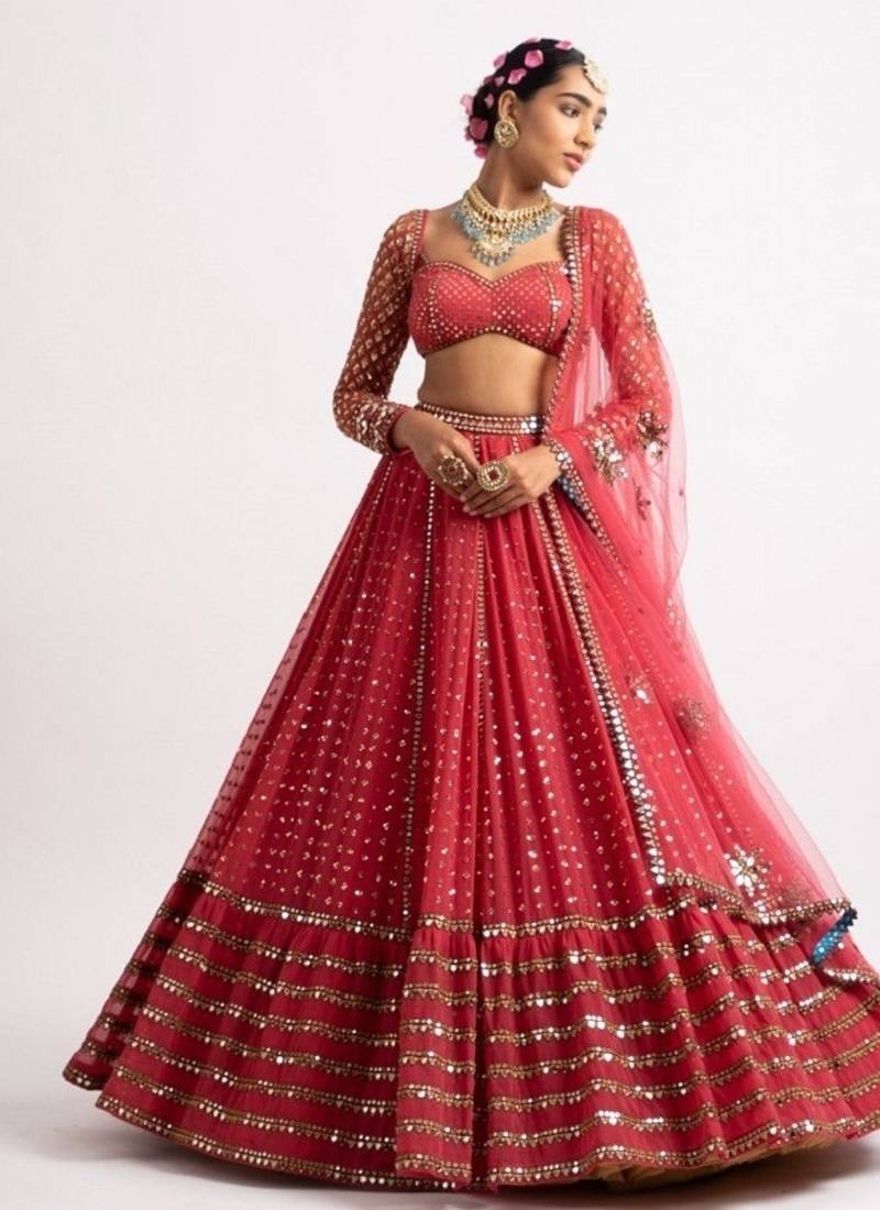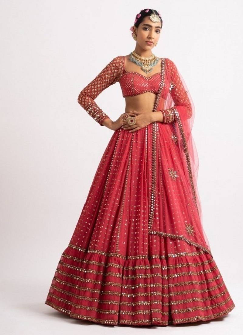 | Product Name | Red Designer Faux Georgette Lehenga Choli With Heavy Sequin & Zari Embroidery Work And Net Dupatta | |