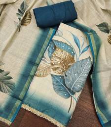 Beige cotton linen printed unstitched dress material
