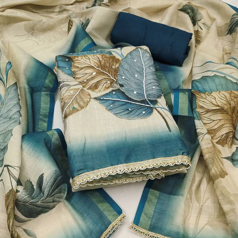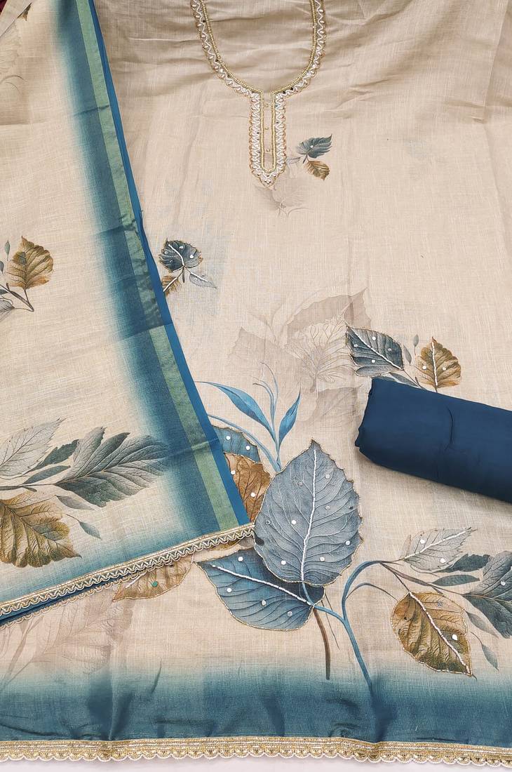 Product Name Beige Cotton Linen Printed Unstitched Dress Material
