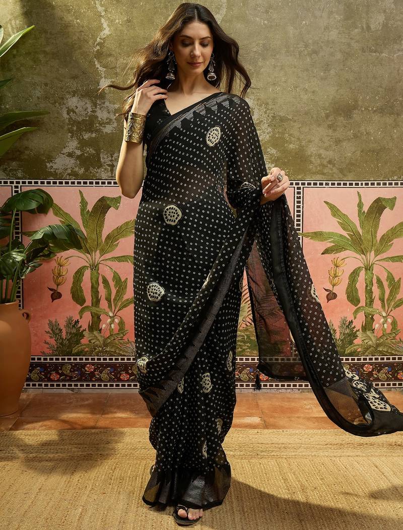 | Product Name | Black Georgette Bandhni Saree With Unstitched Blouse Piece | |