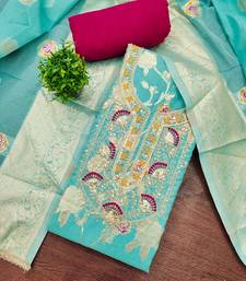Blue banarasi cotton woven unstitched dress material