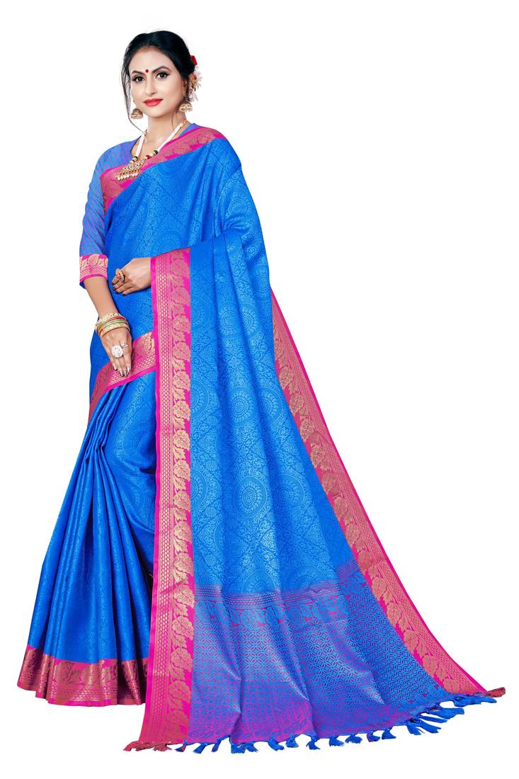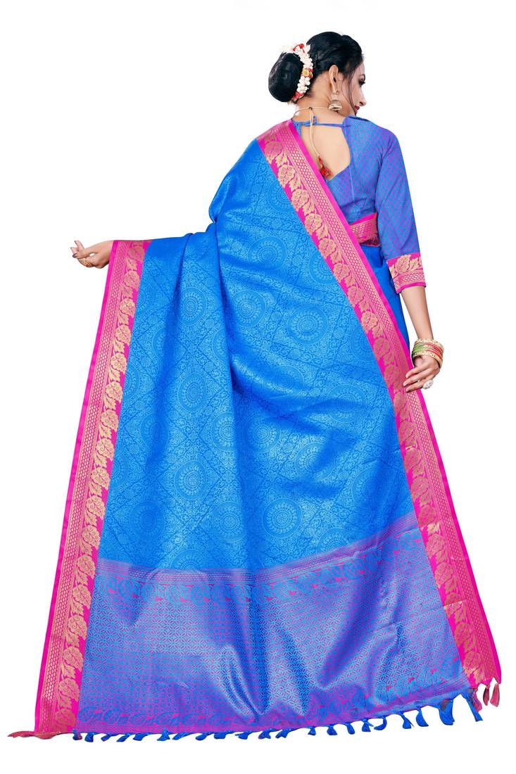 Kimisha blue banarasi silk jacquard work banarasi saree with running blouse