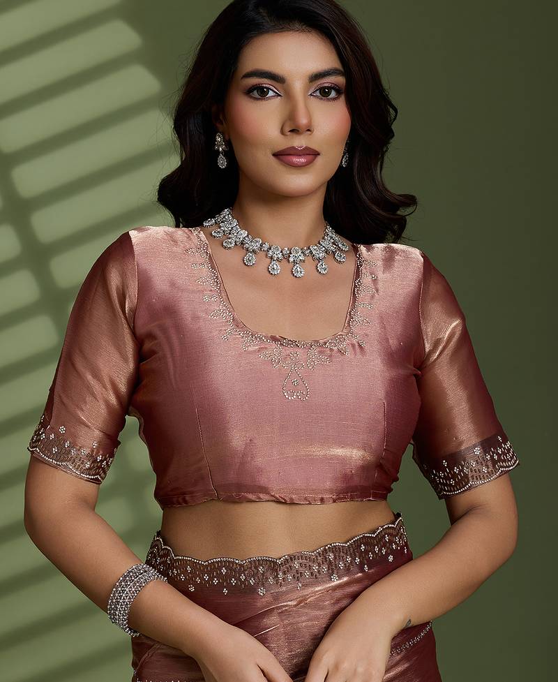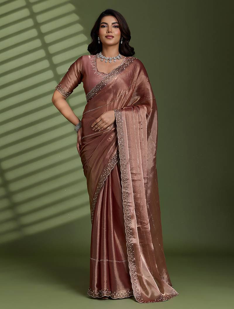 | Product Name | Brown Silk Chiffon Embellished Saree With Unstitched Blouse Piece | |