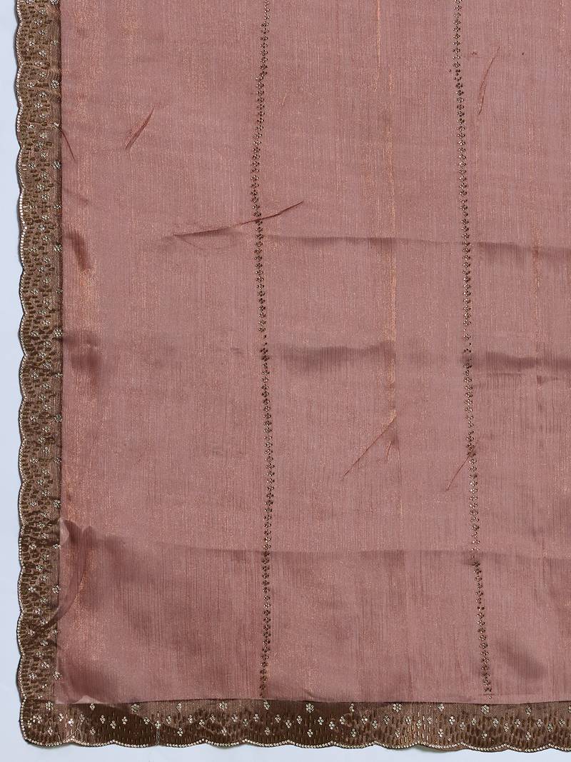 Brown silk chiffon embellished saree with unstitched blouse piece