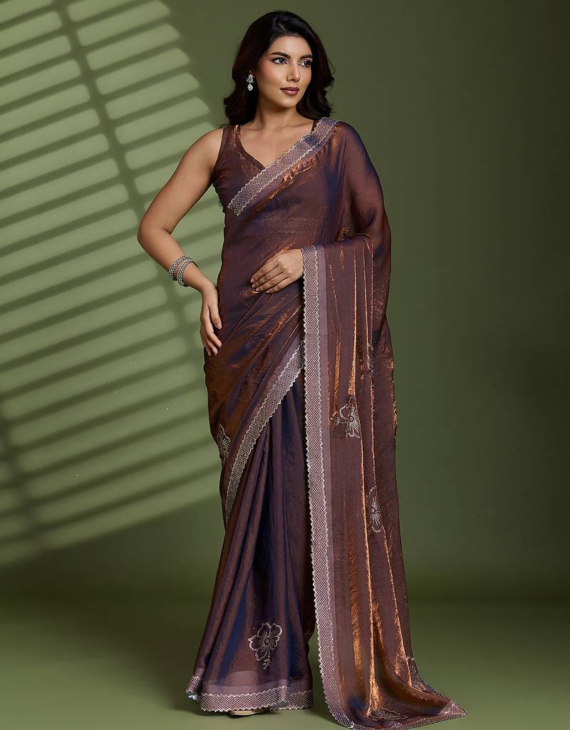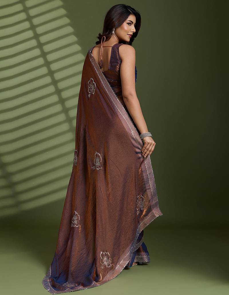 | Product Name | Brown Silk Satin Embellished Saree With Unstitched Blouse Piece | |