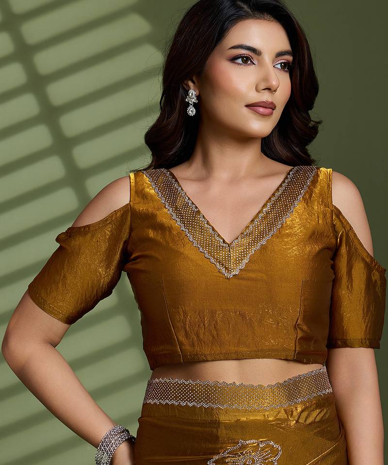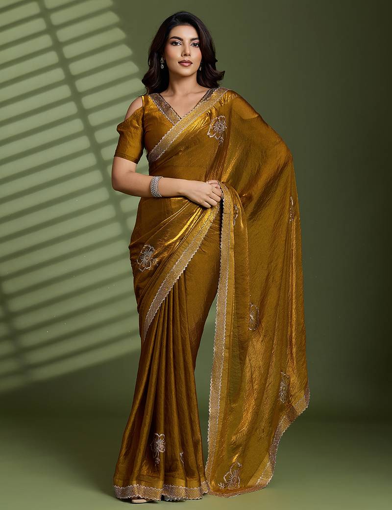 | Product Name | Gold Silk Satin Embellished Saree With Unstitched Blouse Piece | |