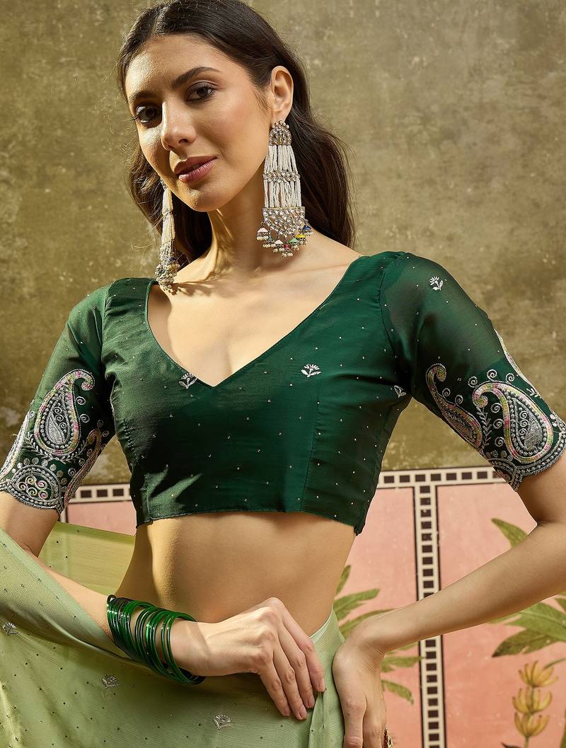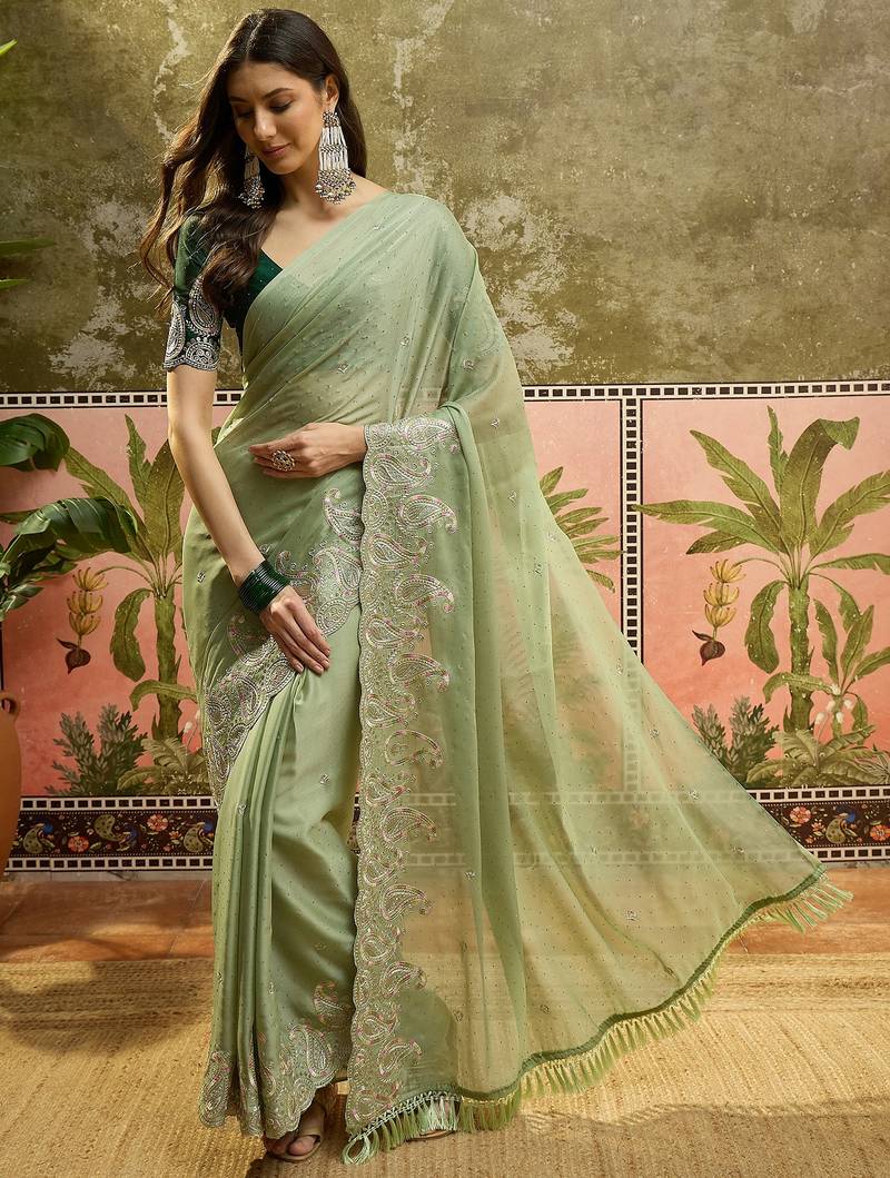 | Product Name | Green Chiffon Embroidered Saree With Unstitched Blouse Piece | |