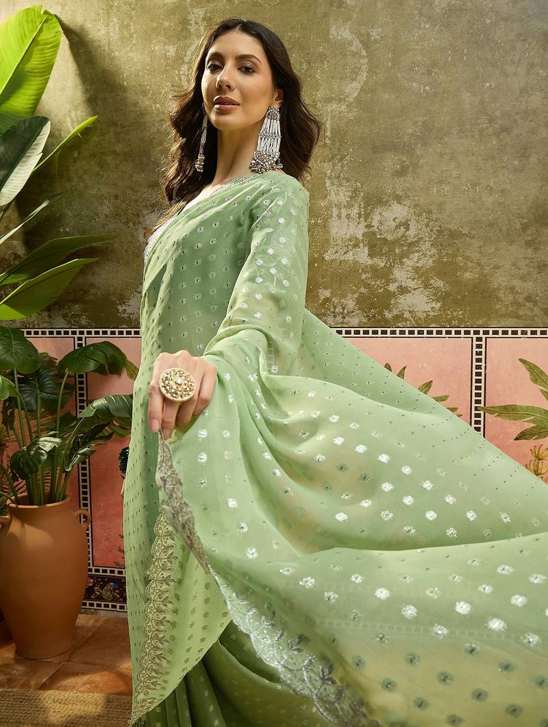 | Product Name | Green Georgette Embroidered Saree With Unstitched Blouse Piece | |