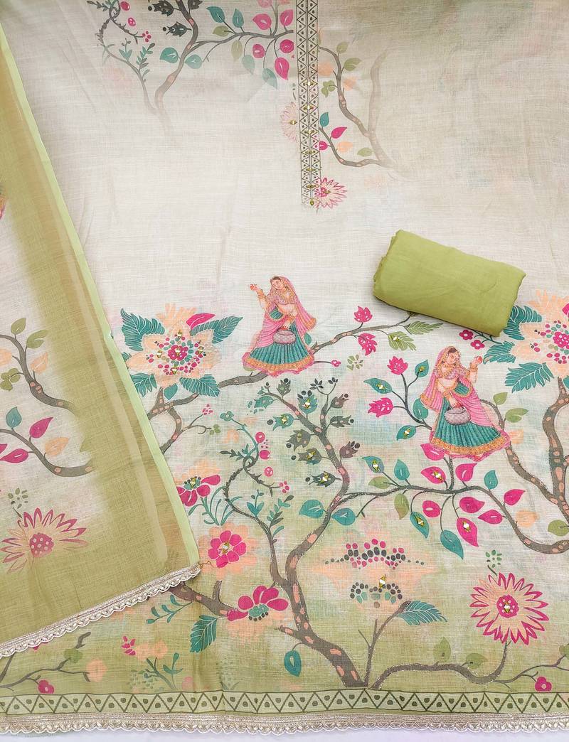 | Product Name | Green Linen Cotton Printed Unstitched Dress Material | |