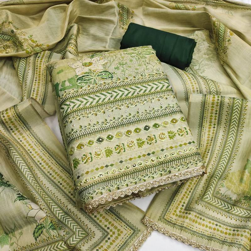 | Product Name | Green Viscose Embellished Unstitched Dress Material | |